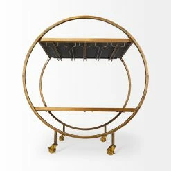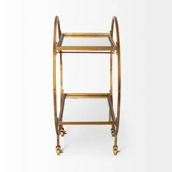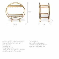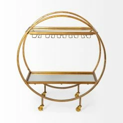 Β Β The Carola bar cart flaunts a ravishing, circular frame design, which when coupled with the ritzy antiqued-gold finish helps add a touch of luxury to any space.Β - Mirror Inlay Shelves