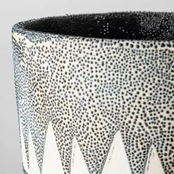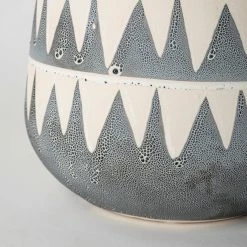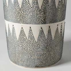 The Delaney is an artsy, hand-crafted ceramic vase featuring a unique, repeating triangle pattern on the exterior. With subtle neutral paints on the exterior that complement its stout body, the Delaney vase looks gorgeous in spaces based on the Mercana Modern design style.Β