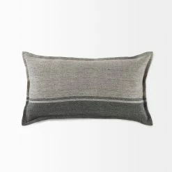 The Zadie is a 14L x 26W Light Gray and Dark Gray Fabric Color Blocked Decorative Pillow Cover with zipper closure. Also available in 20 x 20. Cover only. Insert not included (sold separately).