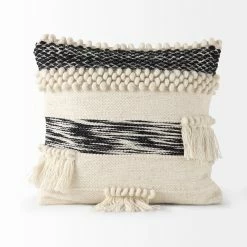 Outlet 🌟 Mercana Beardell Cream & Black W/ Tassels Decorative Pillow Cover πŸ›’