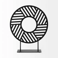 The Micra measures 11.0L x 3.0W x 13.4H.Β The Micra is crafted from sturdy black metal.Β This decorative object is finished in a matte black color.Β The Micra flaunts clean lines and a circular design that adds to its modern look.Β The Micra was designed with a modern and contemporary home in mind.Β