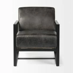 Cheapest 🔔 Mercana Stamford Genuine Leather Seat W/Wood Back & Metal Frame Accent Chair Black 🧨