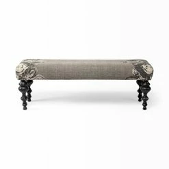 Coupon ⌛ Mercana Alhambra Gray Upholstered Seat W/ Black Solid Wood Legs Accent Bench – 55″W X 14″D X 18″H 😍