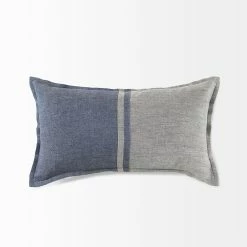 Aubrielle 26″W x 14″H Gray & Blue Fabric Pillow Cover with zipper closure. Also available in 20 x 20 accent pillow size. Cover only. Insert/pillow not included.
