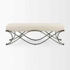 The Ayla is constructed by a plush and soft to the touch cushioned seat, with metal legs that form a crisscross design. The Ayla is finished in a beautiful gray fabric. The legs are finished in dark nickel and have a wave-like movement through them for an enticing visual. The Ayla is the epitome of elegance and class, and looks stunning in entryways to provide functional seating space while serving as a beautiful decor piece as well. The Ayla looks best in homes that follow the enduring elegance design style.