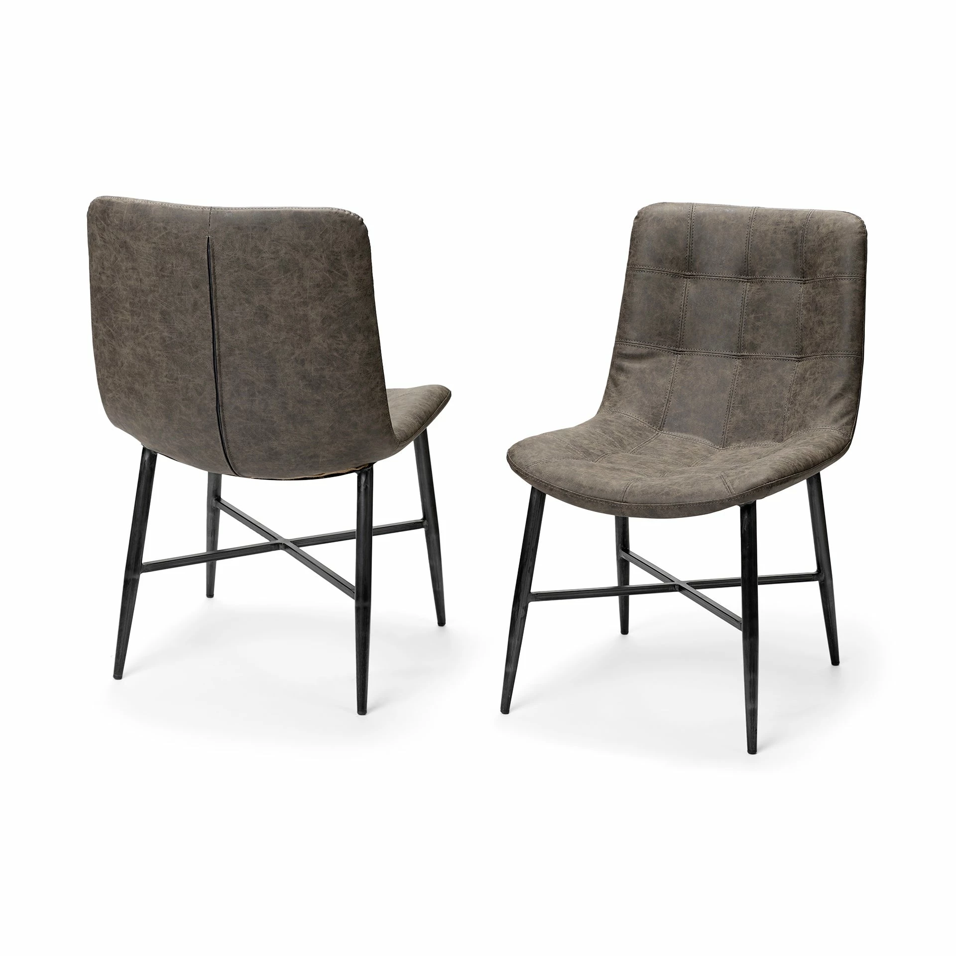 The Barrow II, featuring a solid back, square-stitched seat wrapped in brown-toned faux leather, makes for a comfortable as well as a visually enticing addition to any dining room. - Sturdy Metal Frame