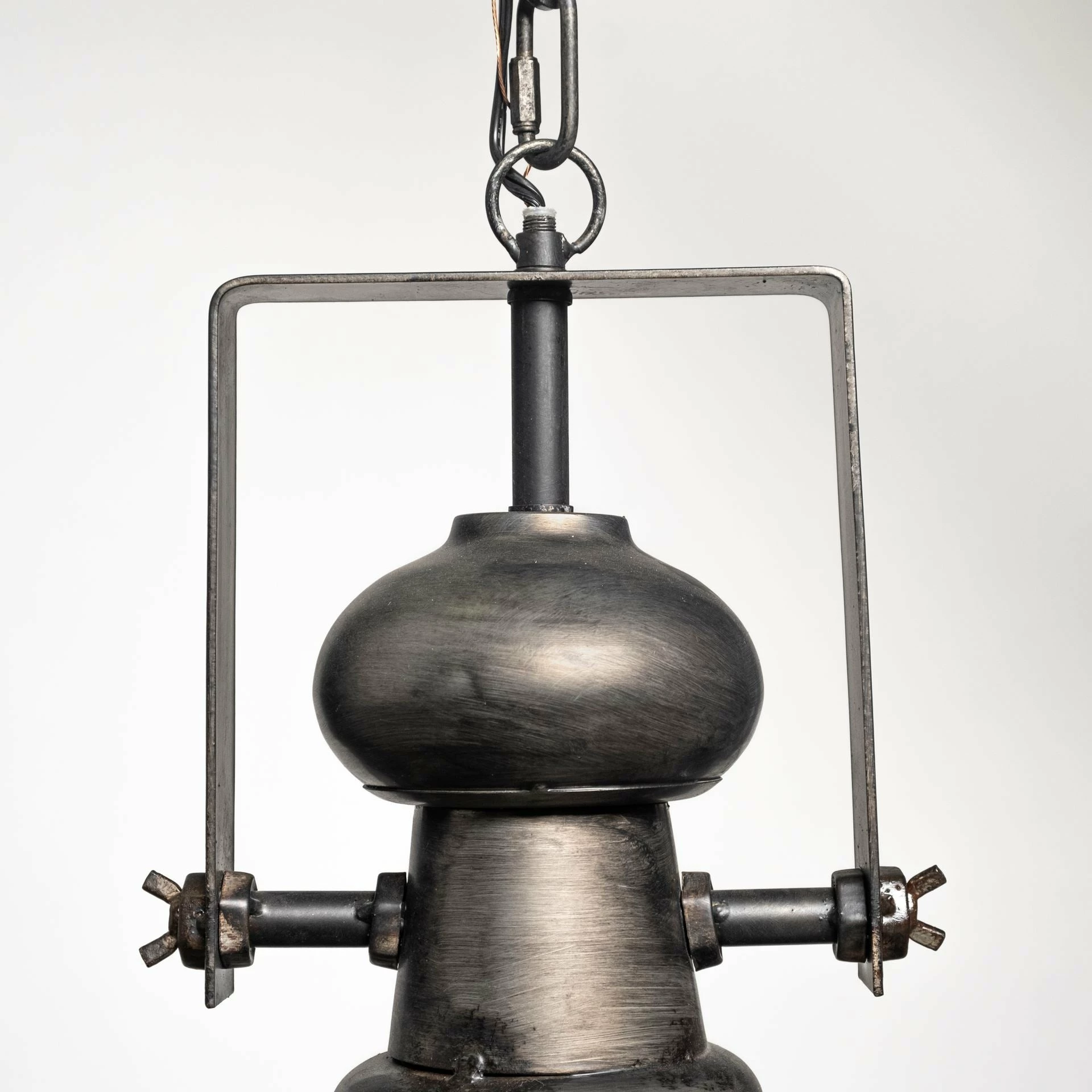 Crafted from metal and finished in a distressed gun metal gray tone, this amazing pendant lamp flaunts a brushed texture, which gives it a truly industrial vibe.ย - Warm, Ambient Glow