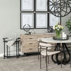 The Carollan object, measuring 6.7″W x 6.7″D x 6.7″H, is a beautiful piece that adds a trendy accent to your space.ย - Wooden Construction