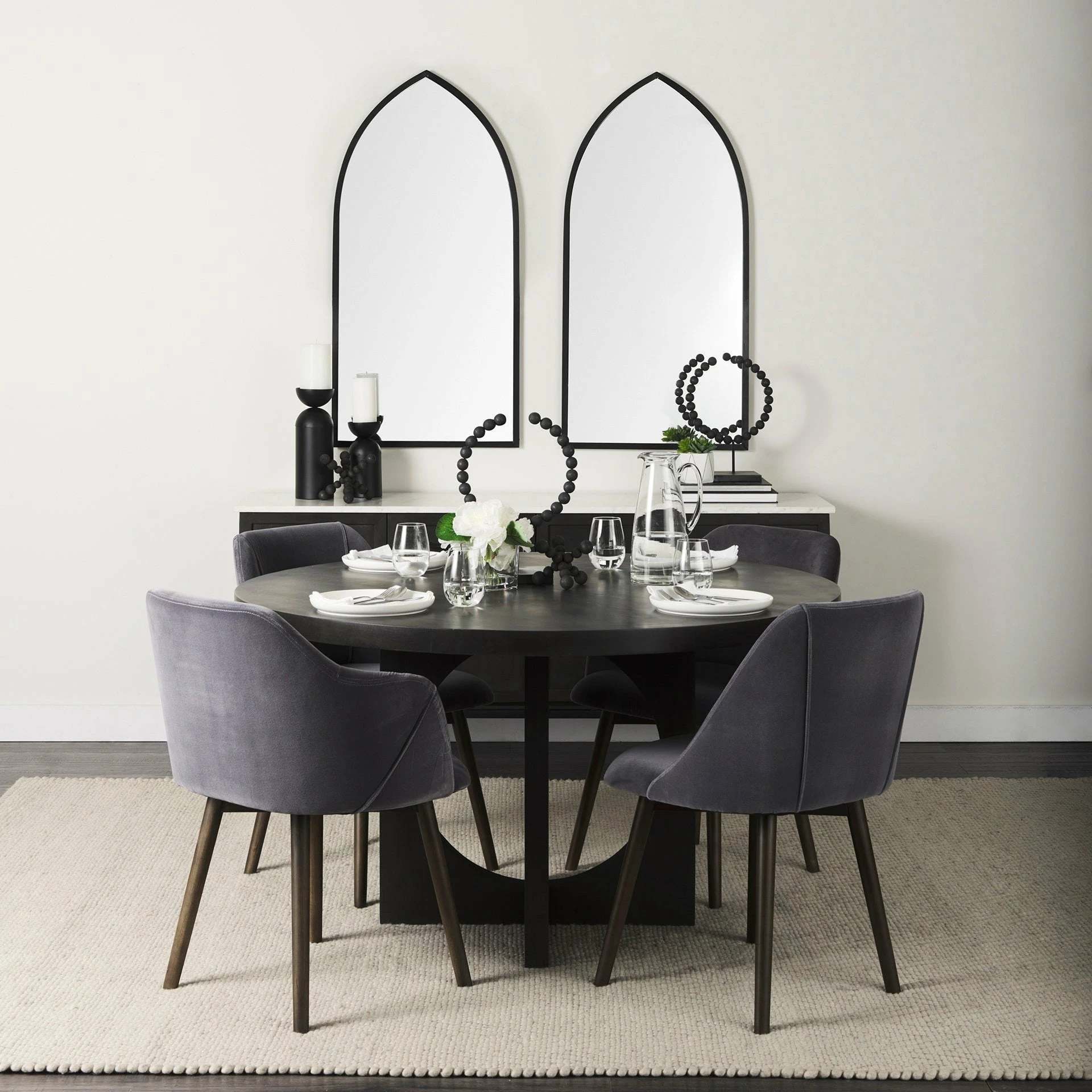 The Carollan is finished in a spectacular rustic black tone, making it a stunning object that is sure to be the perfect accent in your space.ย - Industrial/Modern Inspired Design