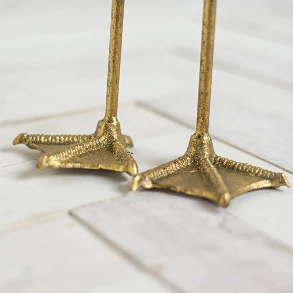 Show off your unique personality with this Mercana Chadwick clock. Webbed feet and long legs serve as the base for this decor piece, adding visual interest to your space. Goldtone accents and an antique-style face offer vintage charm. This clock boasts large Roman numerals for easy viewing.