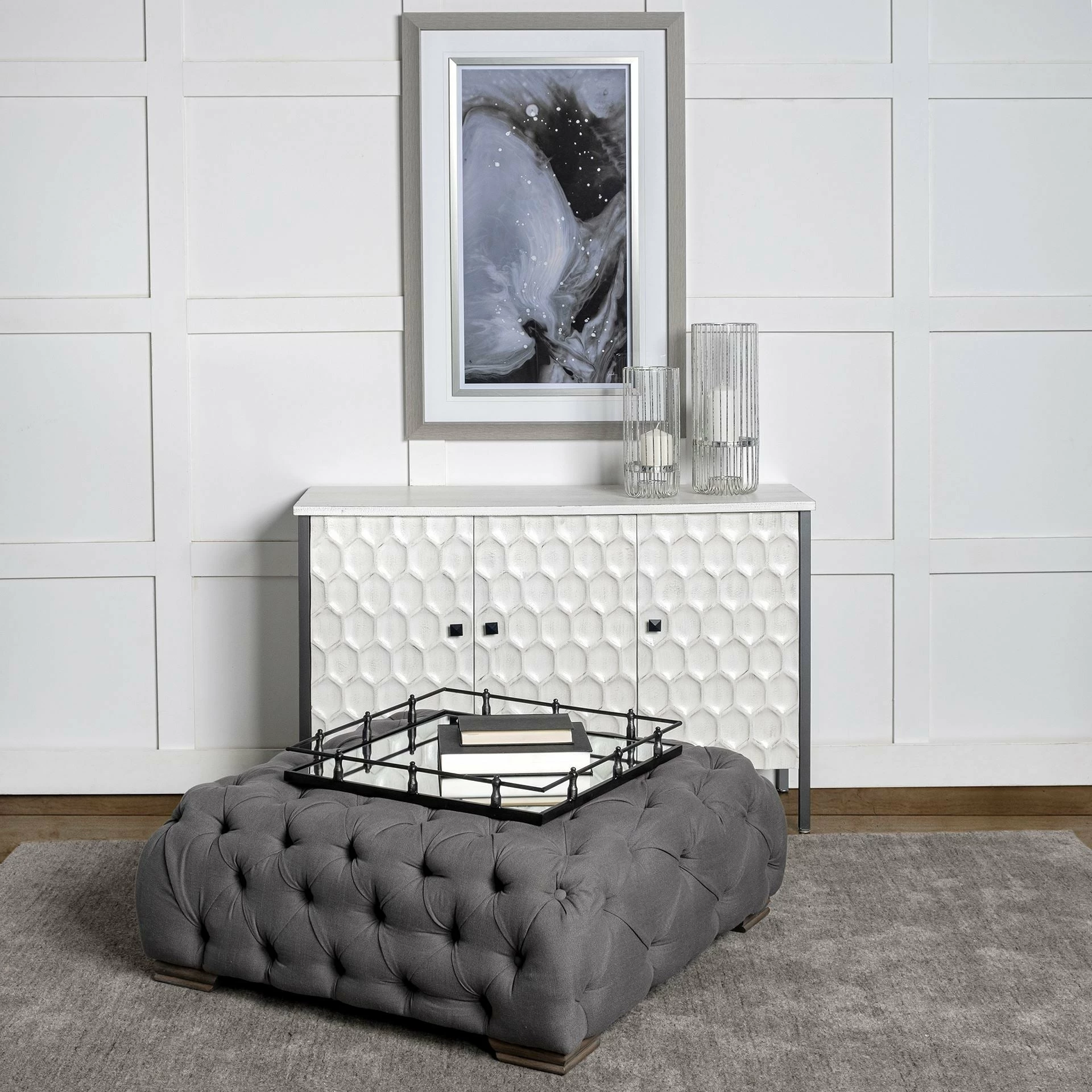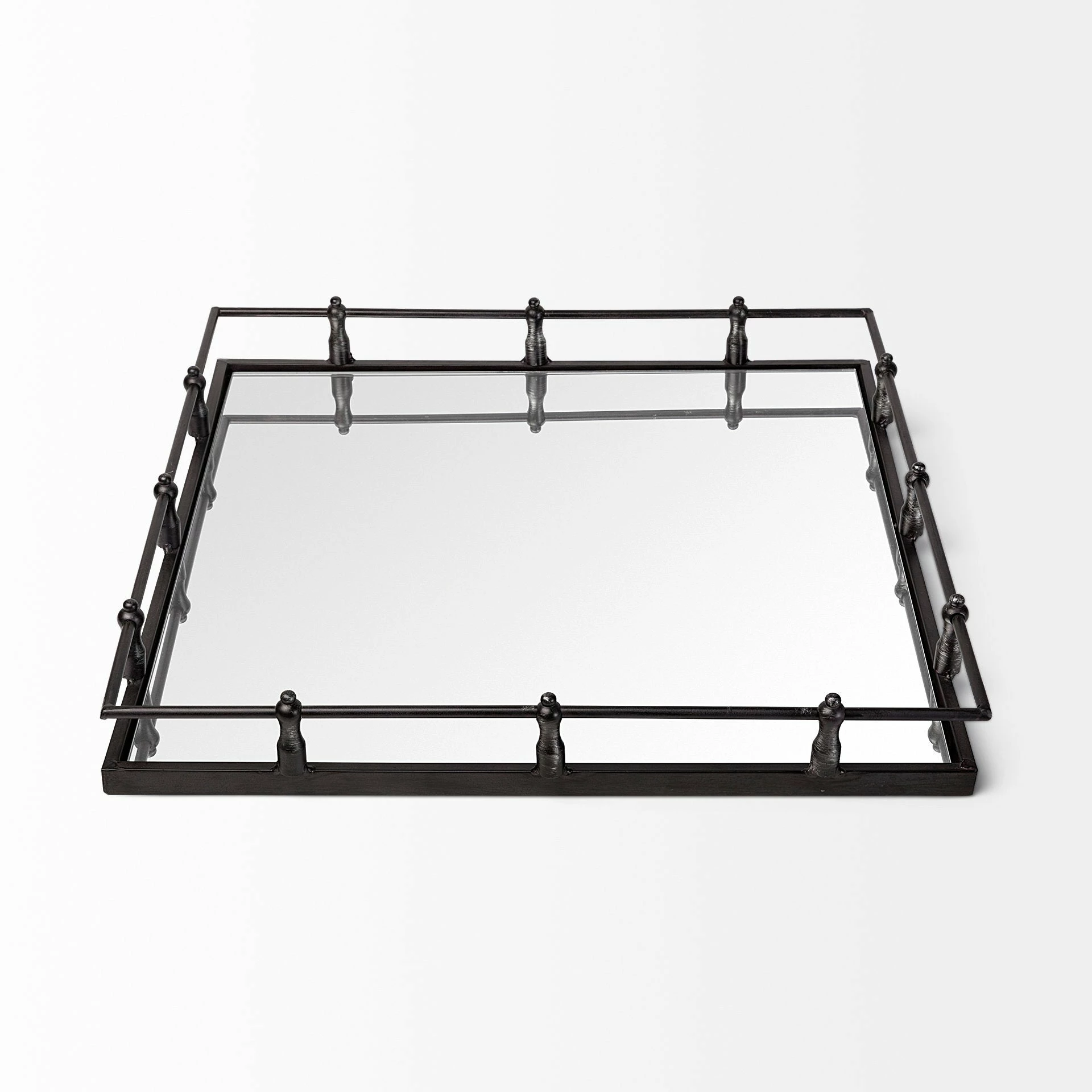 ย Crafted from naturally finished metal, the Christa is a stunning, square-shaped tray with a mirrored-glass base. Itย features raised railings along the boundaries to ensure the safety of the stowed items. In addition to being used as a functional tray, the Christa can also be used as a wall-mounted mirror since it is equipped with two key-hole hangers on the rear. Versatile and visually elevating, the Christa is a great choice of decor for spaces based on the Mercana Modern and Enduring Elegance design styles.