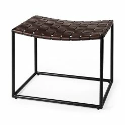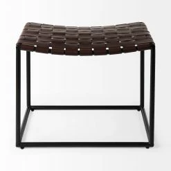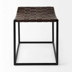 Β The Clarissa is finished with solid black iron legs and a dark brown leather seat that shows off a unique woven formation.Β - Functionality for any Space