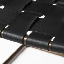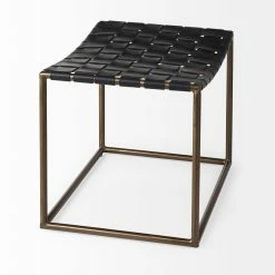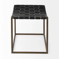 Clarissa is a small black leather woven stool, and measures 22.0″ long by 16.0″ wide by 16.5″ high. The Clarissa is finished with solid dark metallic iron legs and a black leather seat in a woven formation. The Clarissa is a versatile stool, with a simple design that allows you to add functional seating space that is stylish and unique. Designed to complement industrial styled spaces, the Clarissa stool blends seamlessly into spaces where clean lines and dark accent pieces are present.