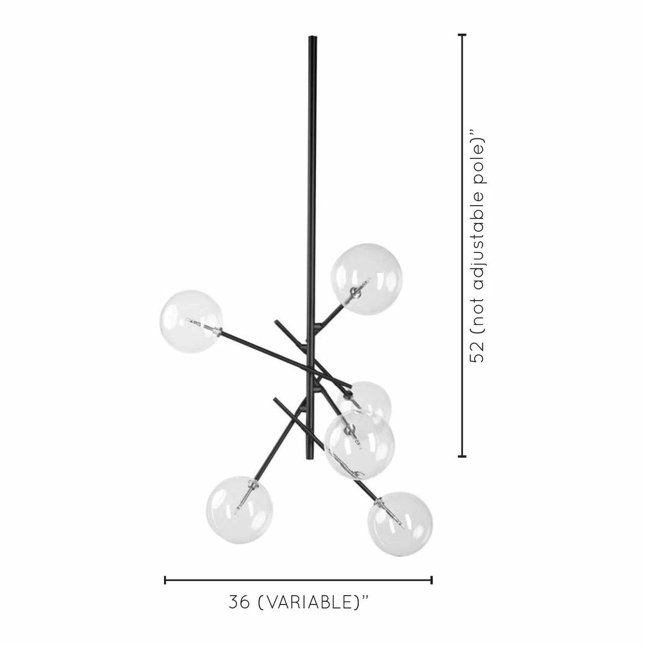 Finished in a matte-black polish, the Cody II is a metallic, multi-arm style chandelier that is sure to be the center of attention in your space. It features six randomly arranged sleek metallic pipes, emerging from a central vertical beam, that each host a glass globe. These glass globes contain the six G4 LED bulbs (Sold Separately) that are used in the Cody II to provide a gorgeous ambient vibe to your space. With glass elements that complement the matte-black accents, the Cody II is a gorgeous as well as energy efficient choice of ambient lighting for spaces based on the Mercana Modern design style.Β