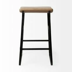 Prudently designed to be a part of contemporary living and dining spaces, the Conan I is a spectacular counter-height stool featuring a low-back seat mounted on a slightly angled, square-profile iron frame. The stylish contoured seat, crafted from medium brown polished mango wood, perfectly complements the matte-black toned iron frame and makes the Conan I a great addition to spaces based on the Mercana Modern and Industrial design style.ย