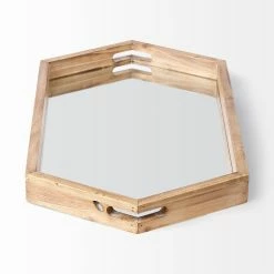 Expertly crafted from naturally polished wood and featuring a mirror-glass lined top, the Durden is a stunning hexagonal tray that can also be used as a wall mirror. With a subtle mix of wood and mirror accents, the Durden looks great in spaces based on the Farmhouse or Enduring Elegance design style.