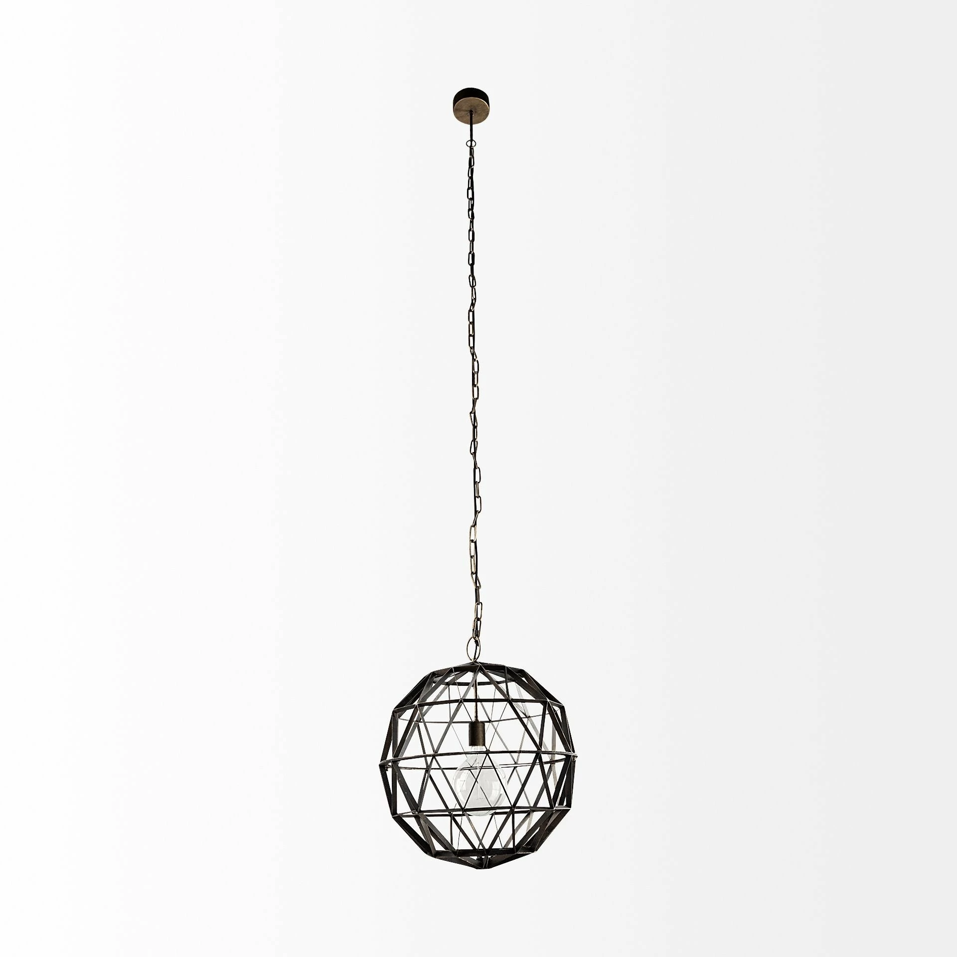 The Dyson I is an industrial, globe-style pendant light from the Dyson series. It features an antiqued-brass toned light fixture enclosed within a matte-black toned, triangular metal orb. The Dyson I uses a 60-Watt, standard E26 bulb (Sold Separately) to cast a radiant glow. With a crisp design and a multi-tone, all metal body, the Dyson I looks gorgeous in spaces based on the Industrial, Mercana Modern and Farmhouse design styles.Β