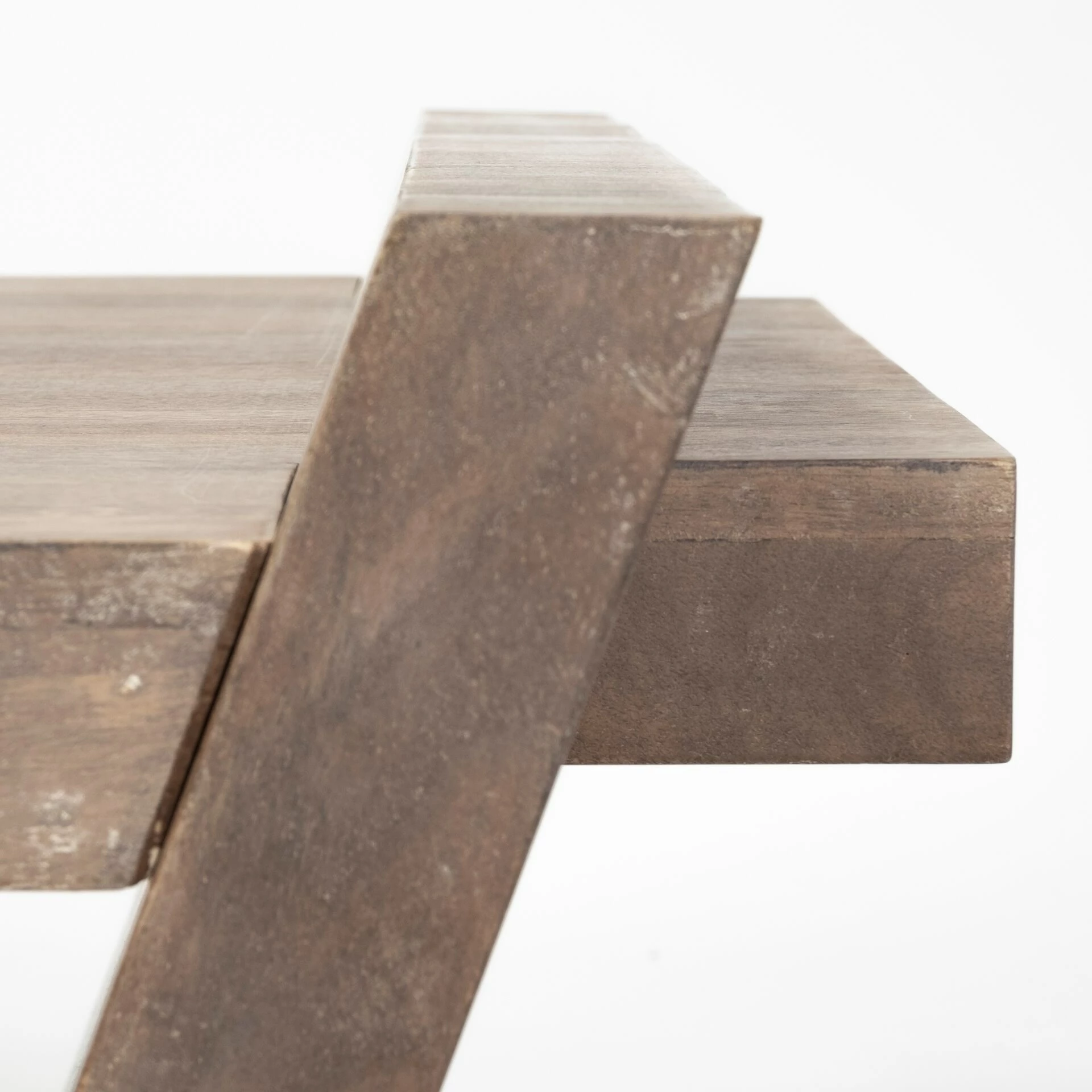 This coffee table, made entirely from solid Mango wood with a cantilever design, strikes a beautiful, angular profile.ย - Gray Washed Finish