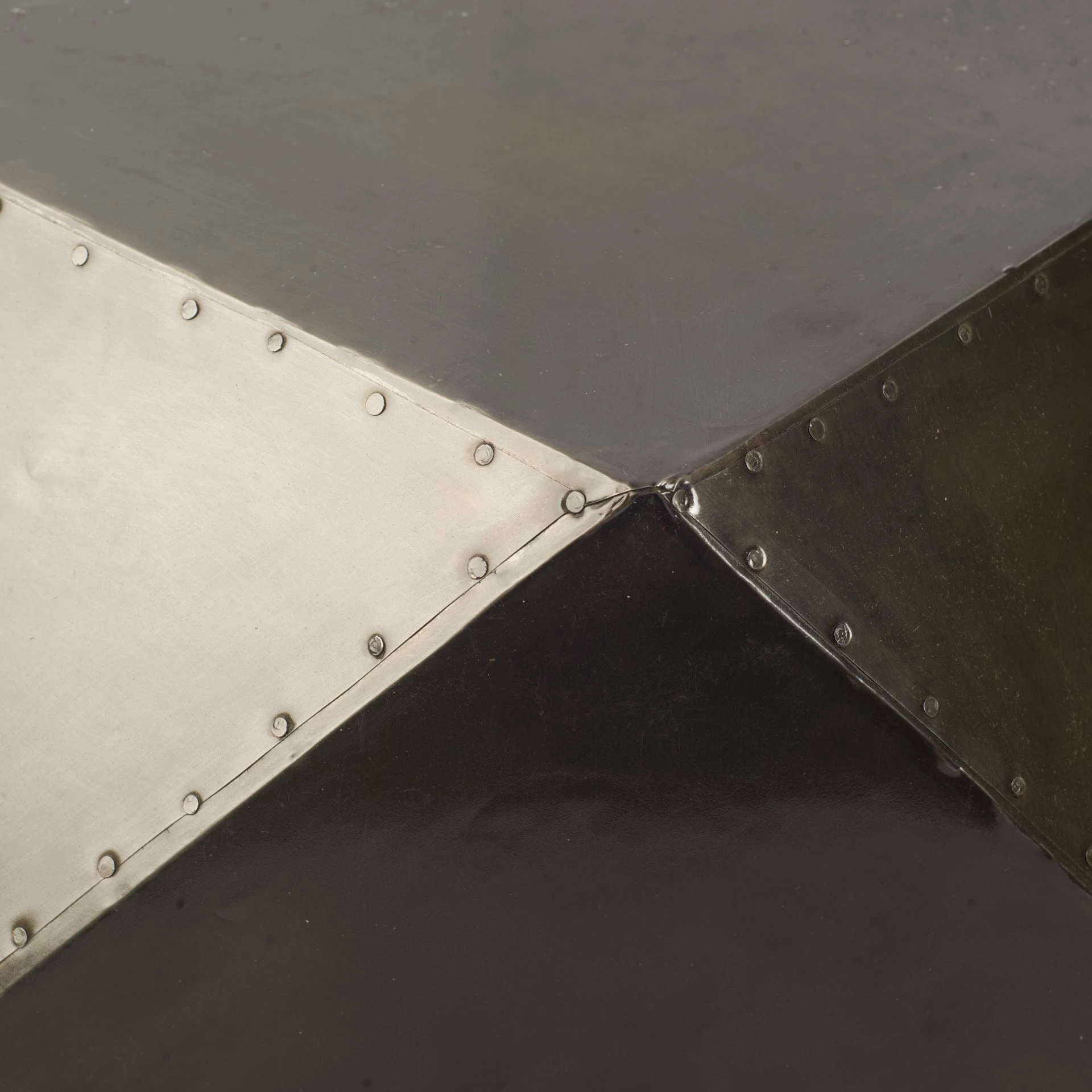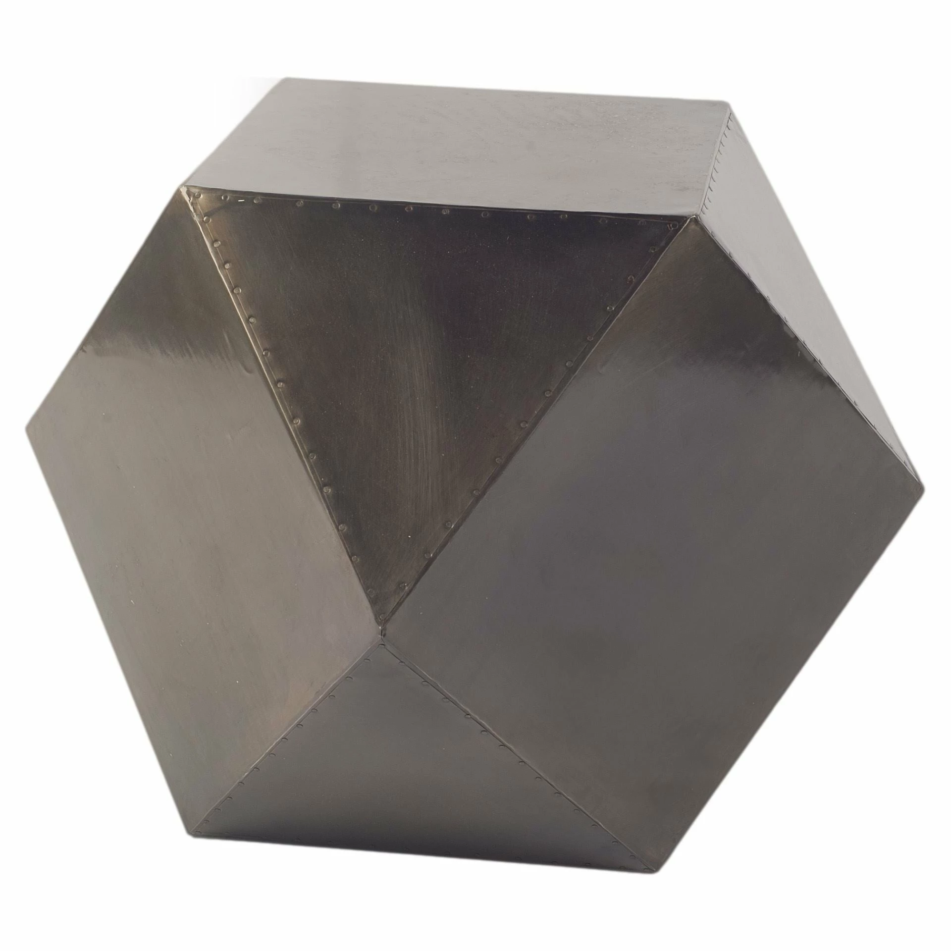 This octagonal side table, wrapped in iron cladding, has striking geometric facets that give it a sense of sculptural style.ย - Aged Black Finish