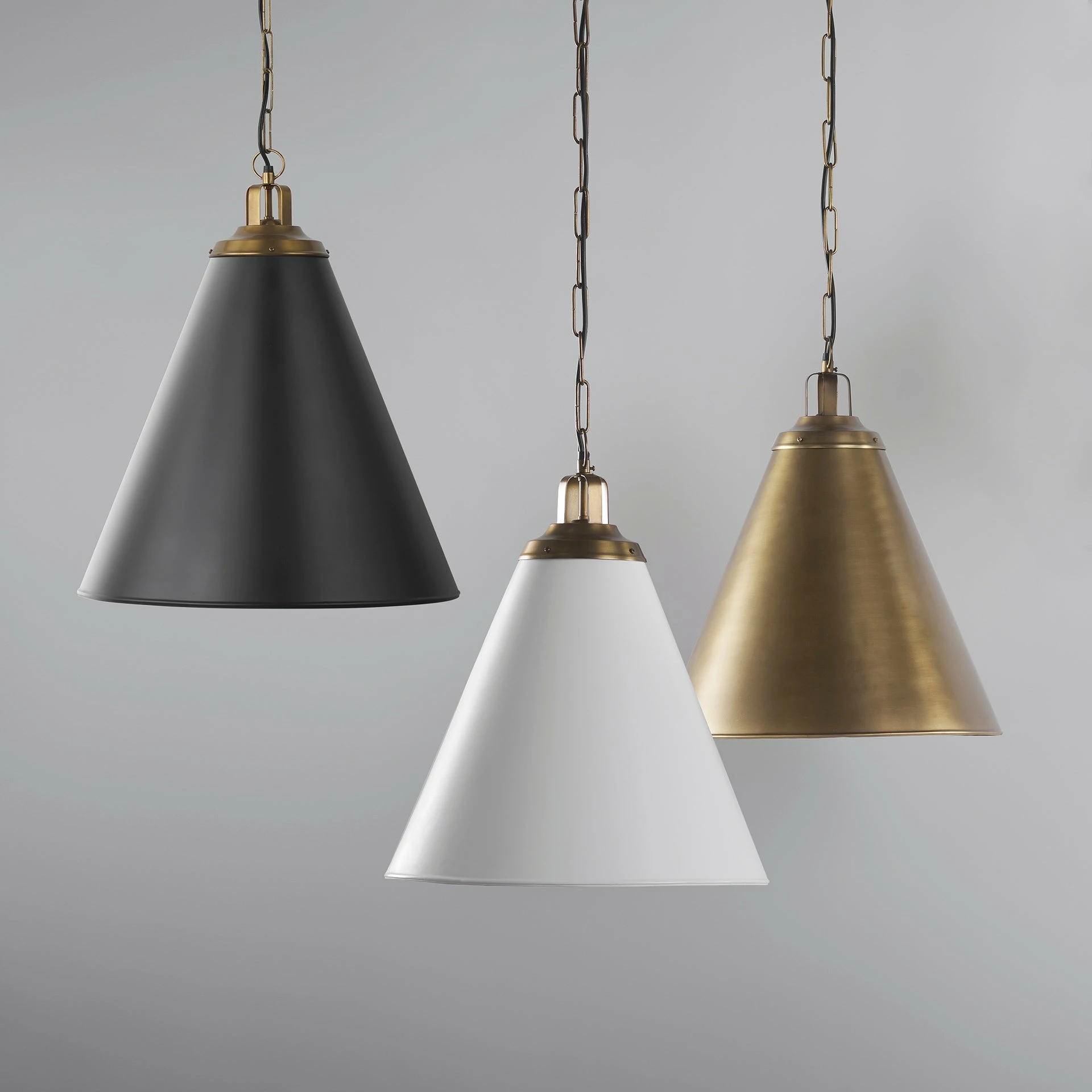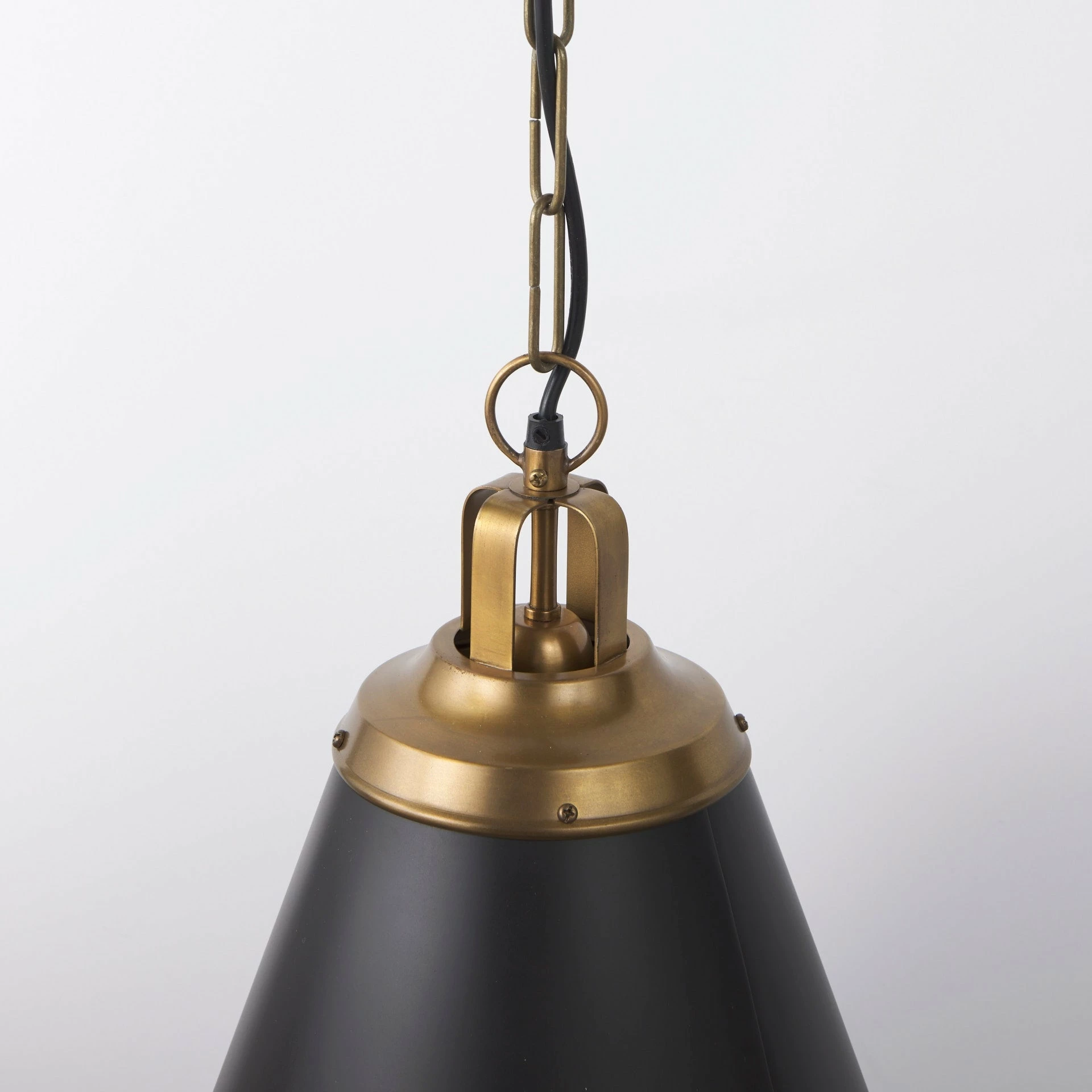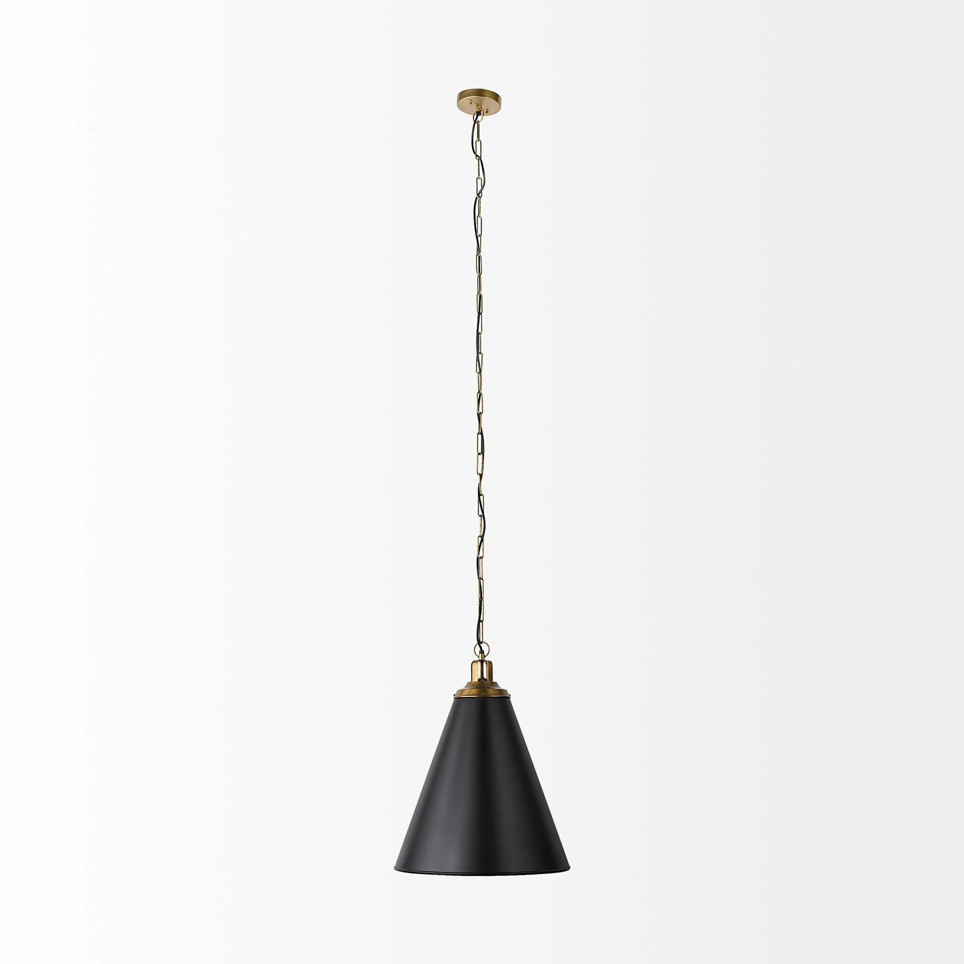 Finished in a matte-black tone with antiqued-gold accents, the Fenton is an amazing pendant light that is suspended by an adjustable chain measuring 60 inches in length. It features a conical shade that hosts a 40-Watt, standard E26 bulb that casts a luminous glow. The Fenton, thanks to its two-tone metal body, fits perfectly in spaces based on the Farmhouse, Mercana Modern and Industrial design styles.Β