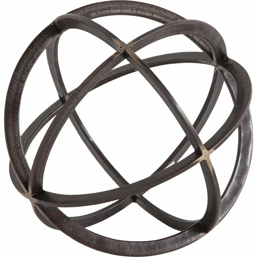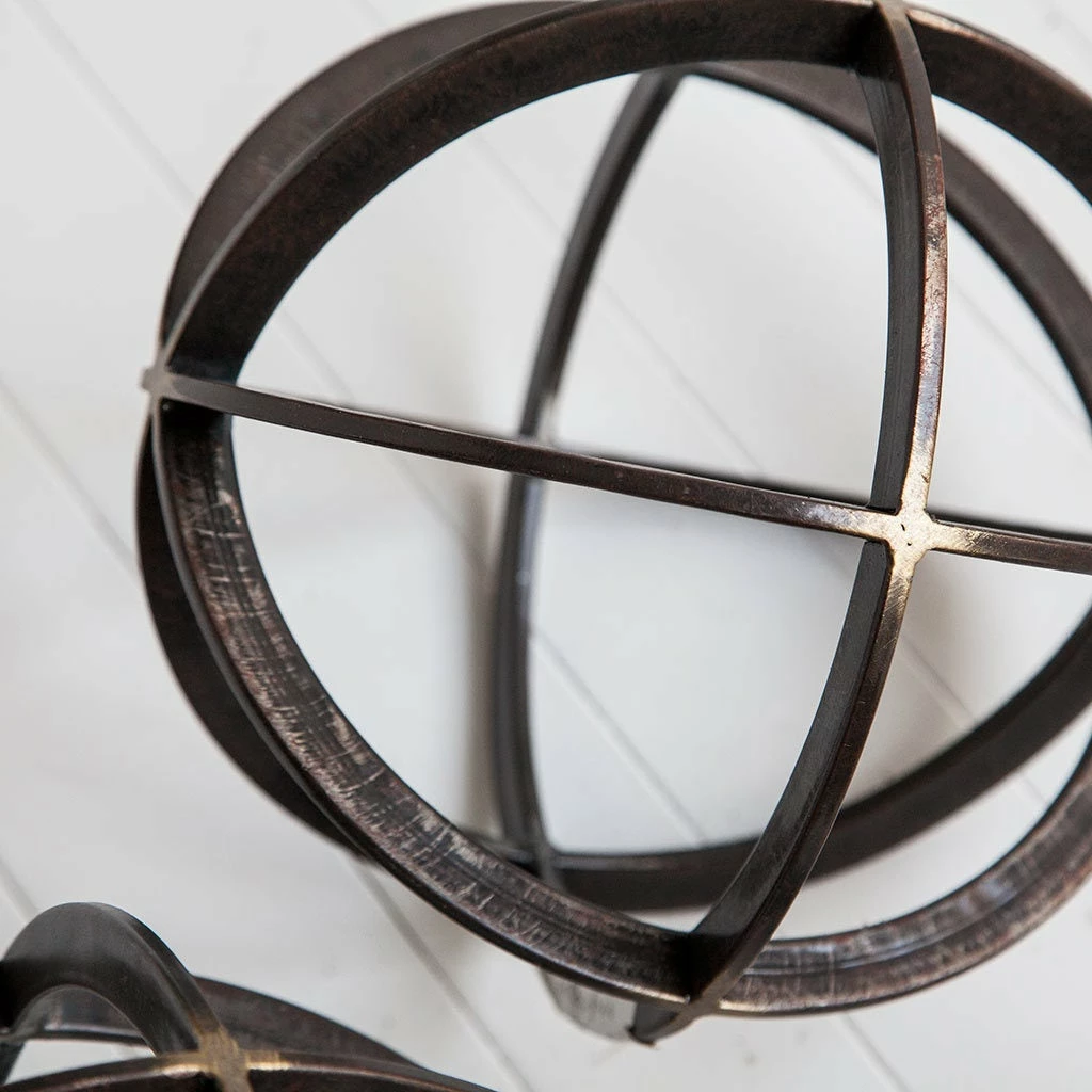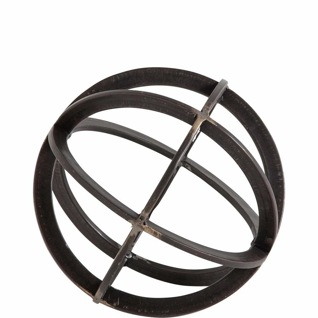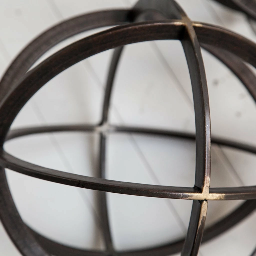 Dark metal orb with antiqued bronze showing through at the joining points. Looks great on its own or grouped with the 2 other sizes.