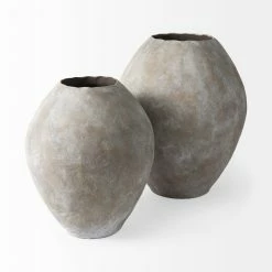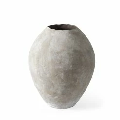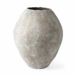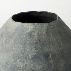 An earthy ceramic vase reminiscent of ancient Mediterranean vessels. 23.4″ Tall VaseThe Gobi is a decorative vase measuring 19.7″L x 19.7″W x 23.4″H.Ceramic ConstructionThis ceramic vase features a rounded body with a wide, chipped-away opening. It’s a simple way to dress up countertops and shelves with color and texture.Mottled Gray FinishWith a roughened exterior in an aged, mottled finish, the Gobi vase is evocative of Mediterranean clay vessels used to store and transport valuable commodities in ancient times. Rustic StyleIt’s rustic, earthen finish blends effortlessly into farmhouse, lakeside and woodland homes.