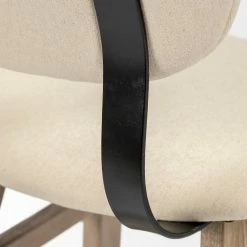 In addition to sturdy construction, the Holden II also flaunts a superior, natural brown polish that highlights the grain and variation in the wood used. The wooden frame complements the cream fabric wrapped seat up top and adds to the visuals of this piece. - Mid-Century Modern Design