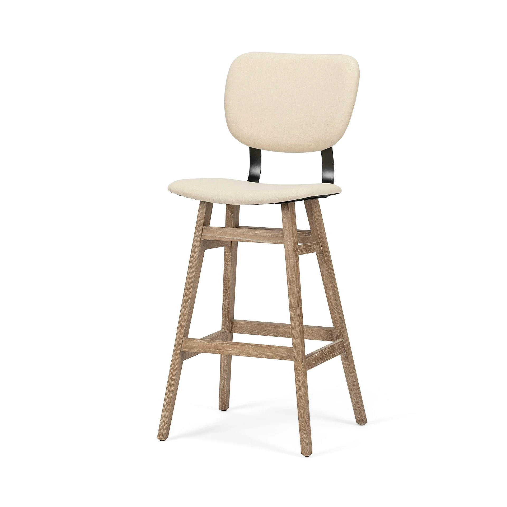 The Haden II is a comfortable, chair-style bar stool featuring a seat and back wrapped in a cream-toned fabric with exceptional cushioning. The seating is mounted atop a stylish, four-legged Beechwood base equipped with footrests that stabilizes the stool to perfection. A perfect combination of style and comfort, the Holden II fits perfectly among other pieces in spaces based on the Farmhouse, Lakeside, Industrial and Enduring Elegance design style.