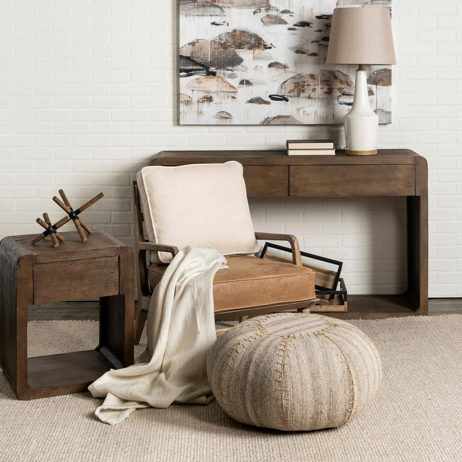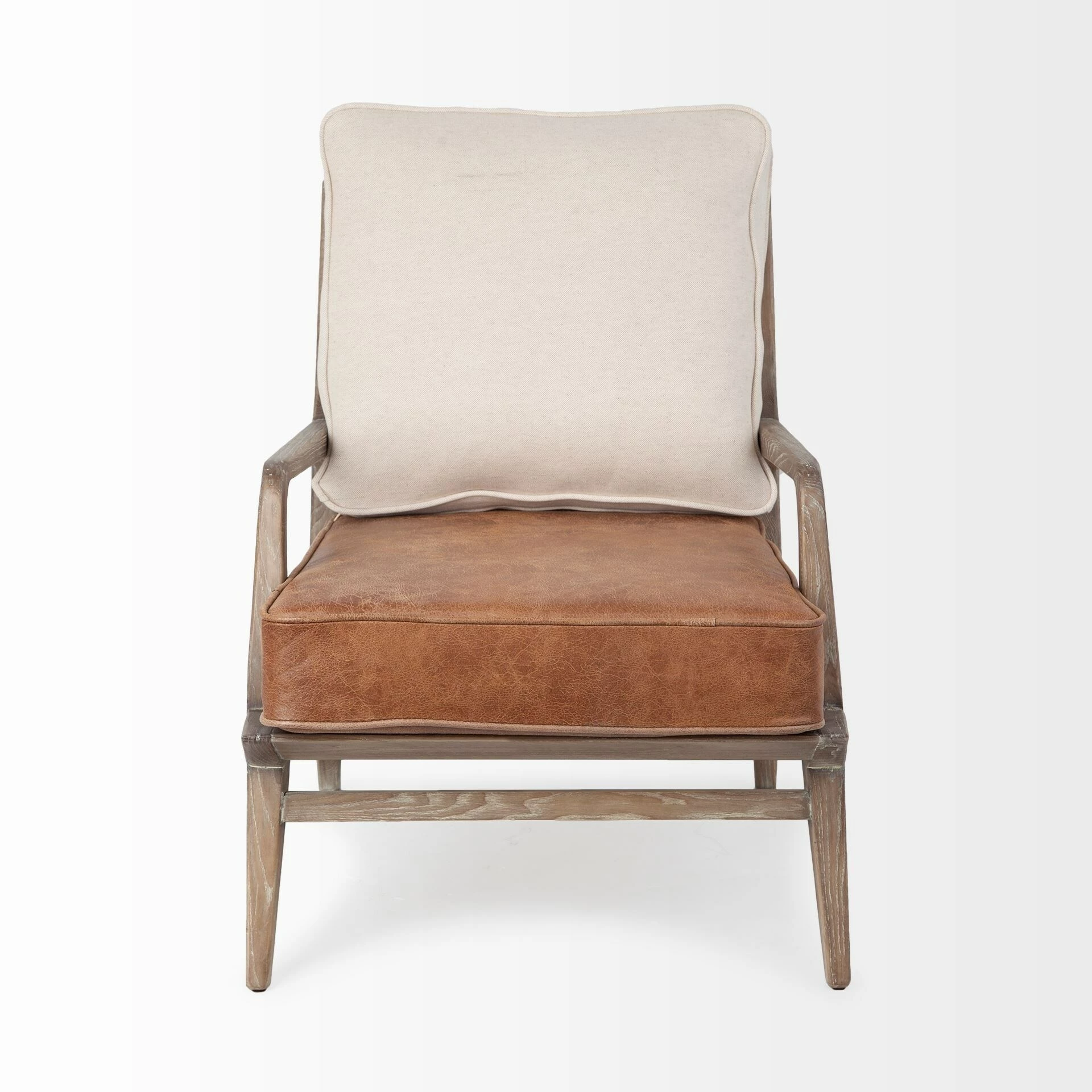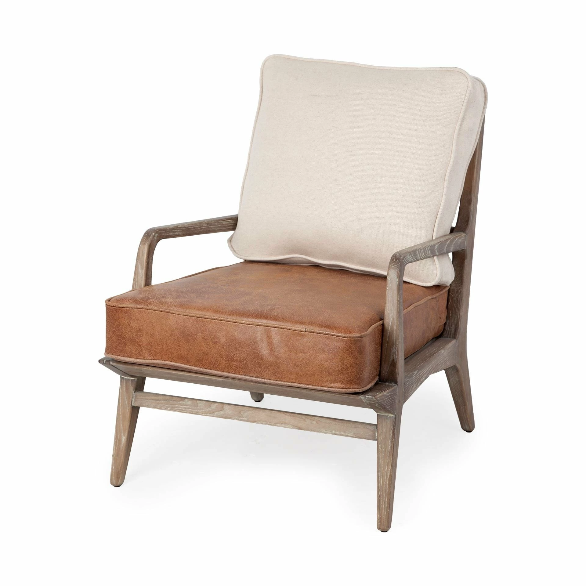 The Harman I, featuring a detached leather seat and a backrest wrapped in plush cream-toned fabric, makes not only for a comfortable seating option but also a visually enticing addition to any living room.ย - Sturdy Ashwood Frame