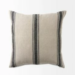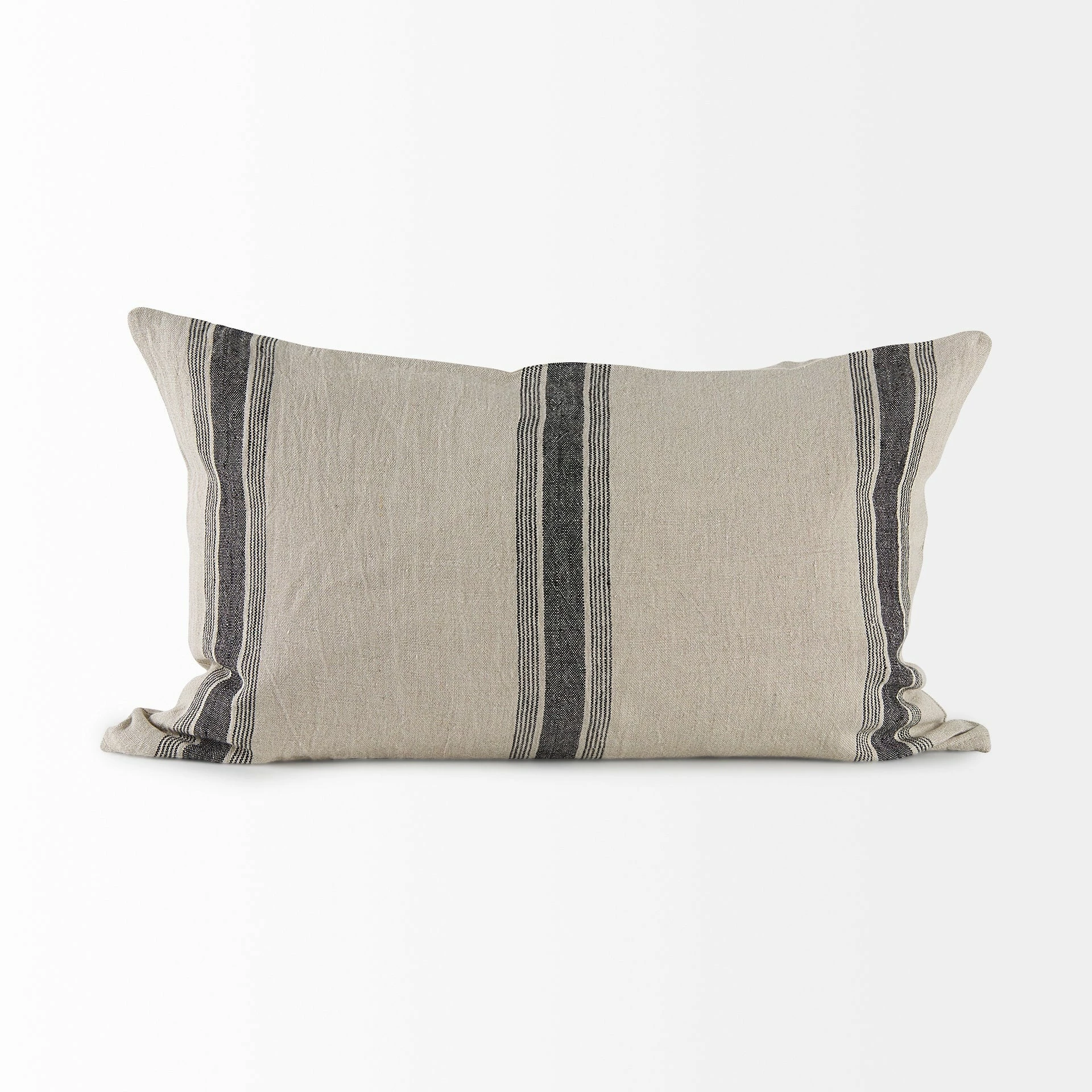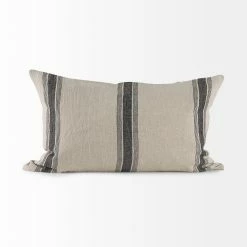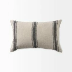 The Hattie is a 13L x 21W Beige and Black Fabric Striped Decorative Pillow Cover with zipper closure. Also available in 20 x 20. Cover only. Insert not included (sold separately).