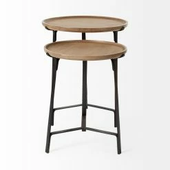 ย 69012 – Helios (Set of 2) Brown Solid Wood Top Black Metal Base Nesting Coffee Tables