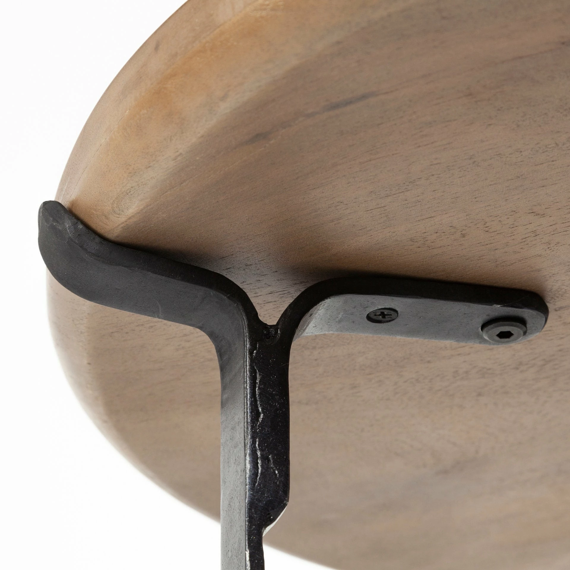 These side tables, made from solid Mango wood, feature crisscross, iron bases beneath round, lipped tops – a simple design that packs a stylish punch!ย - Light Brown and Black Finish