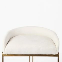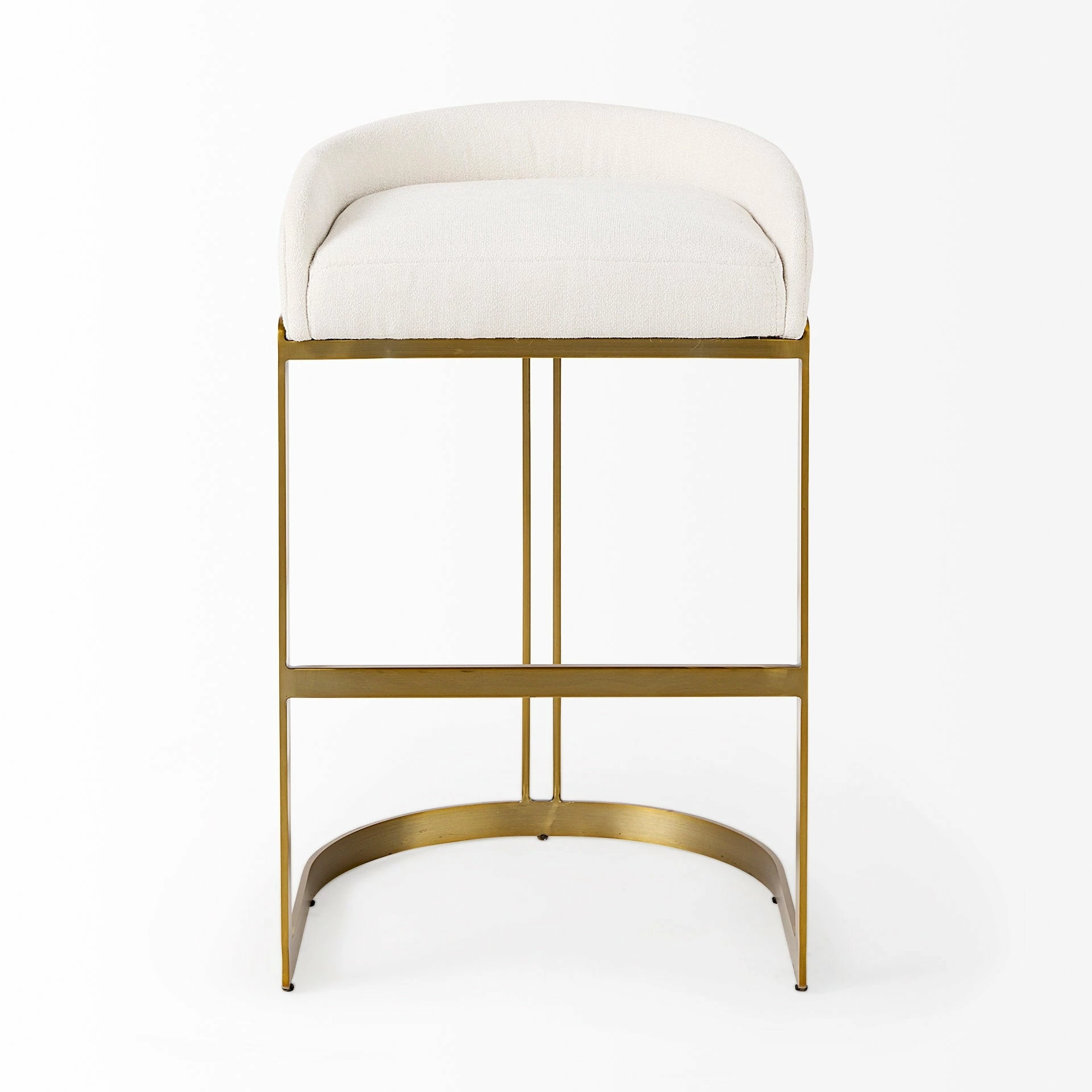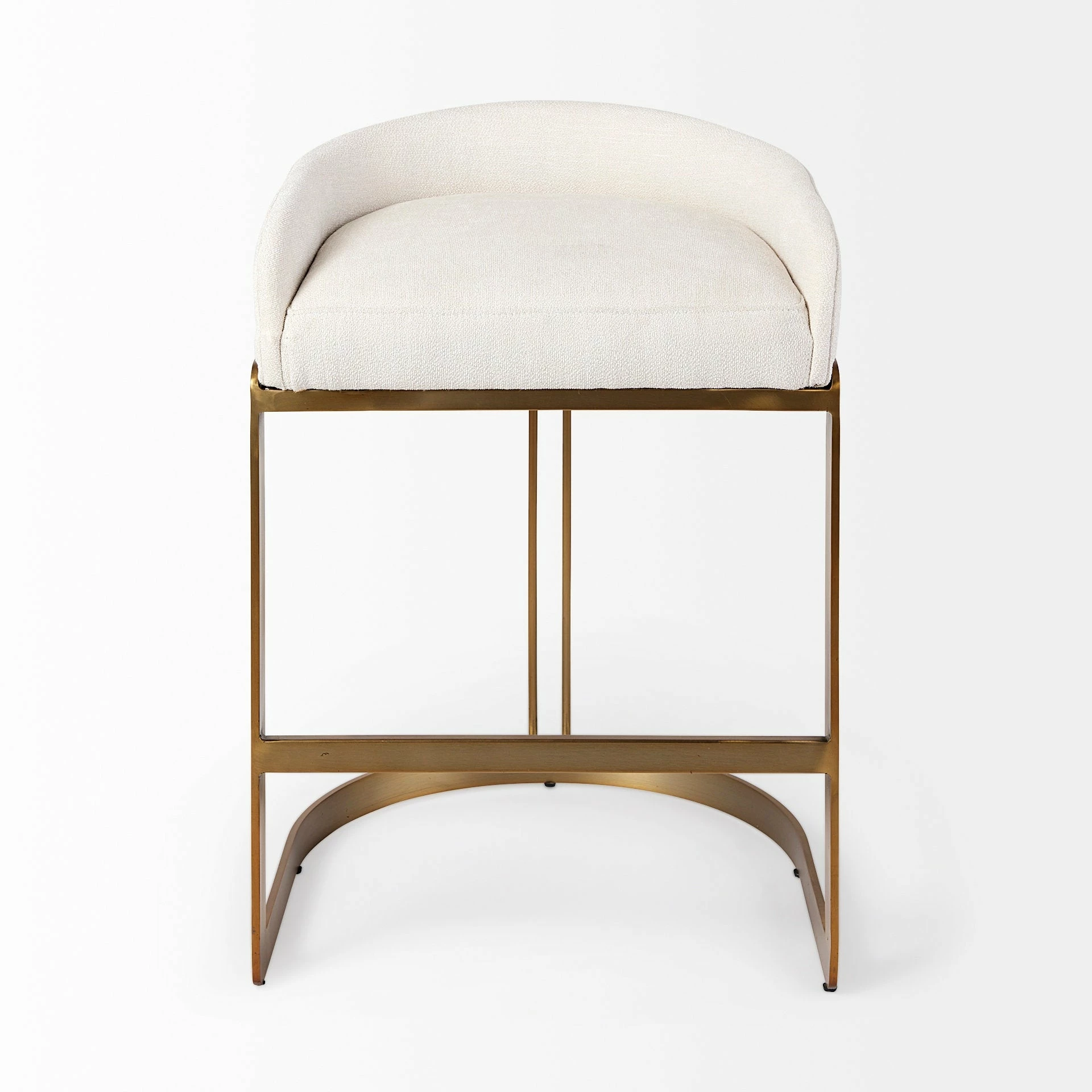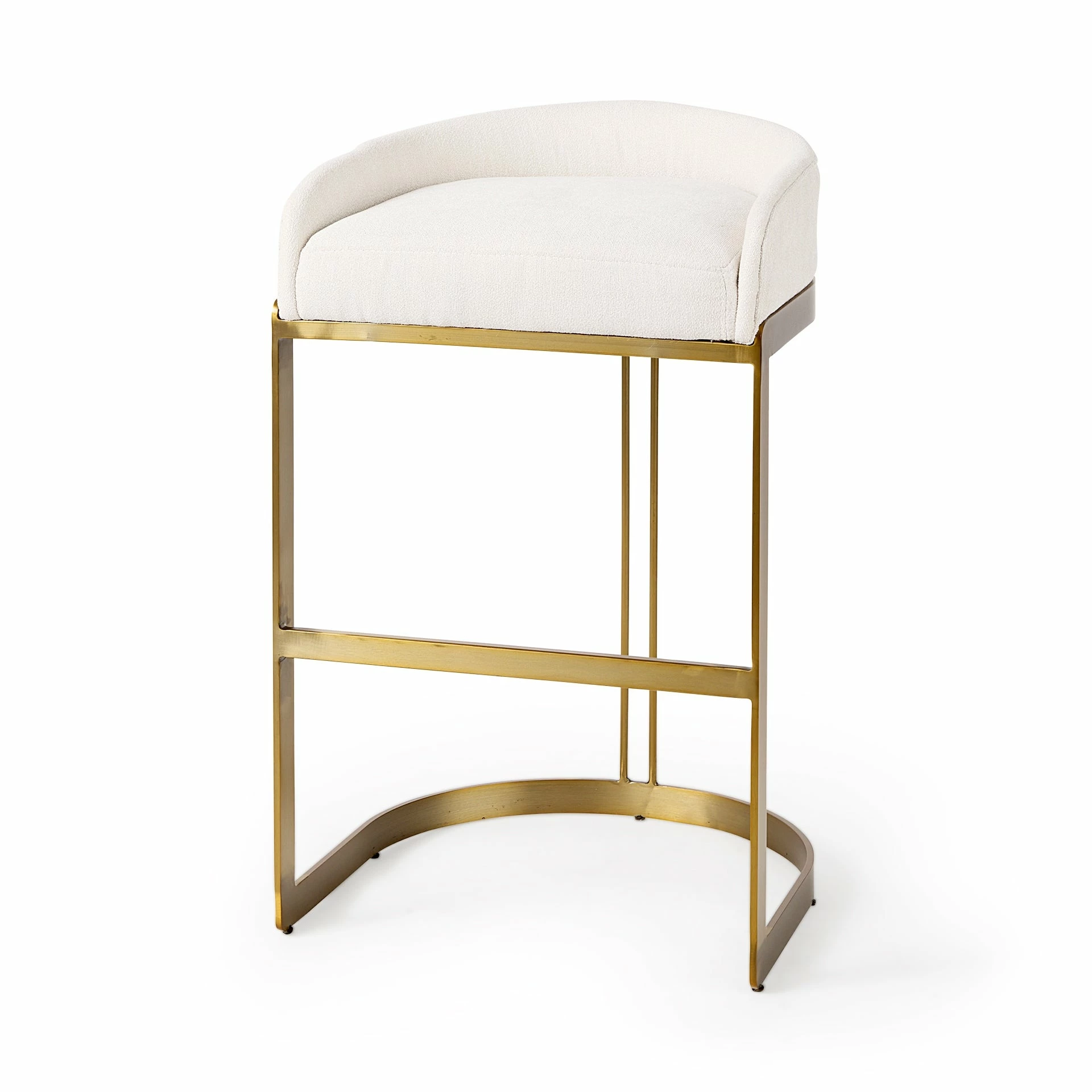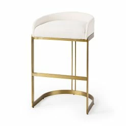 The Hollyfield, a stunning low-back club-style counter height stool, features a posh cream fabric seat that is mounted on a unique metal frame. The gold colored metal frame has a unique demilune shaped base which not only adds to the visual appeal of the Hollyfield but also guarantees exceptional stability. The Hollyfield looks fabulous in spaces based on the Enduring Elegance or Mercana Modern design style.