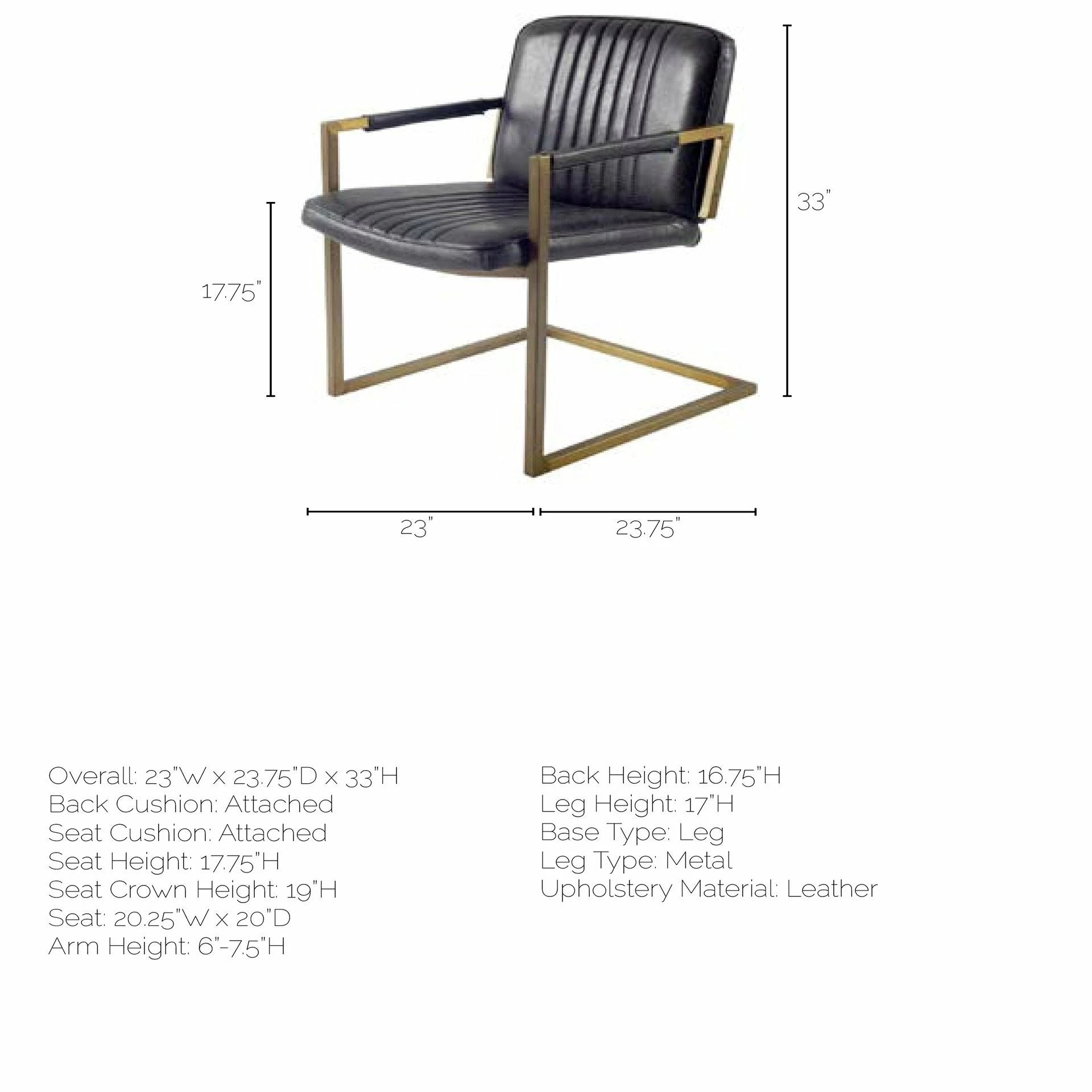 ย The Horner accent chair measures 23.0″ long by 23.8″ wide by 33.0″ high.ย - Posh Leather Wrap
