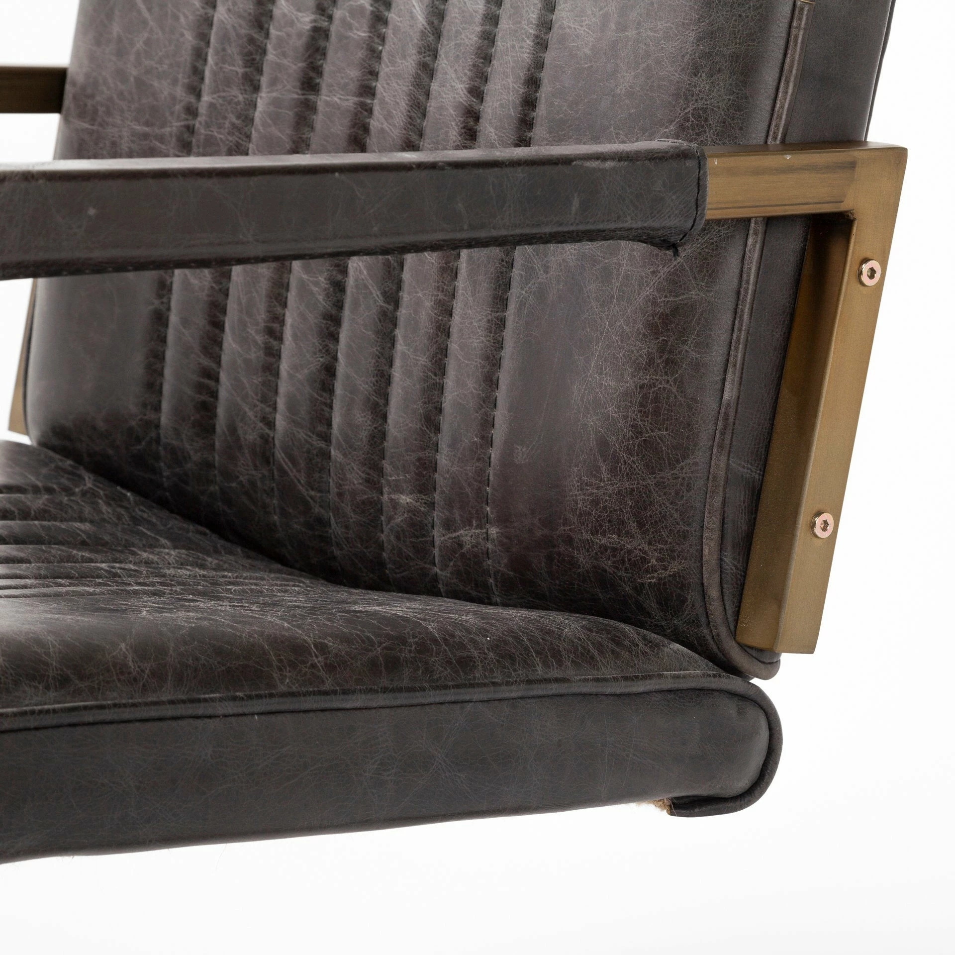 ย Featuring a leather wrapped back and seat with trendy armrests, the Horner looks gorgeous and is guaranteed to add a touch of the industrial or modern style to your space.ย - No Assembly Required