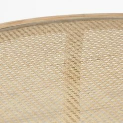 This table has a cane-woven surface that sits under a glass top and rests upon a solid Mango Wood frame. The frame curves outwards, creating a soft, airy look. - Light Brown Finish