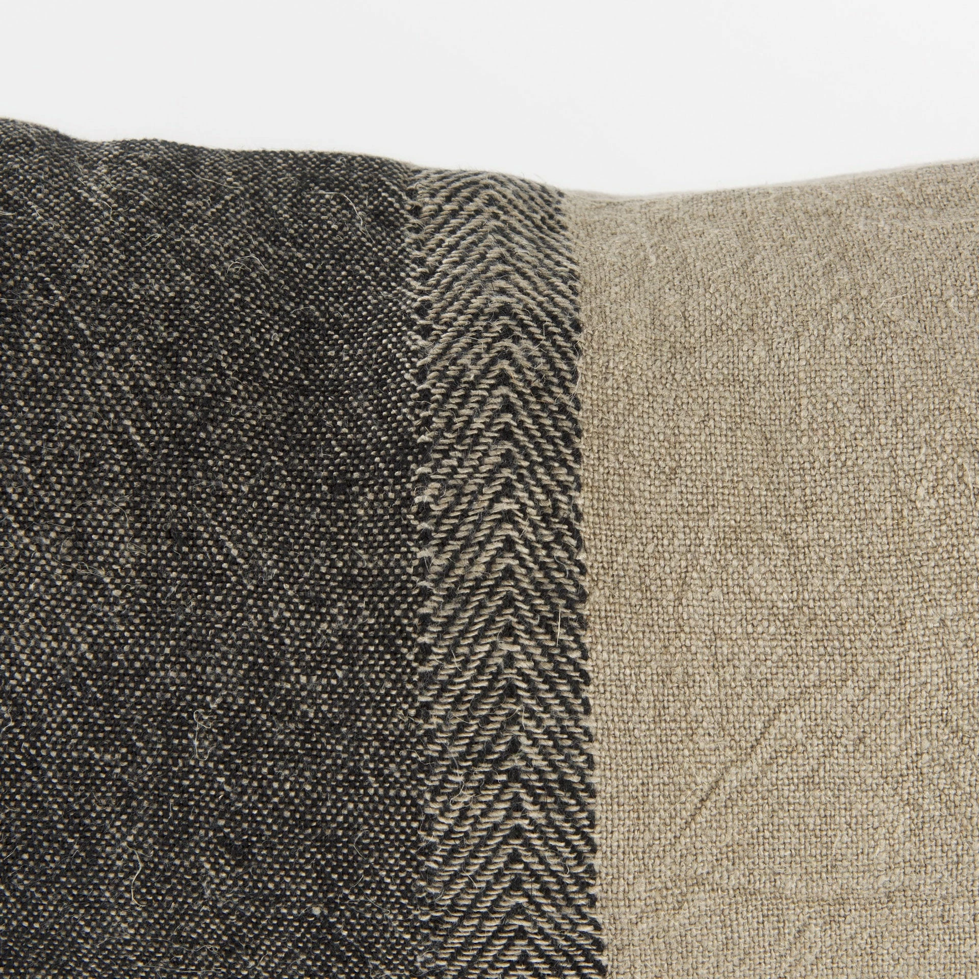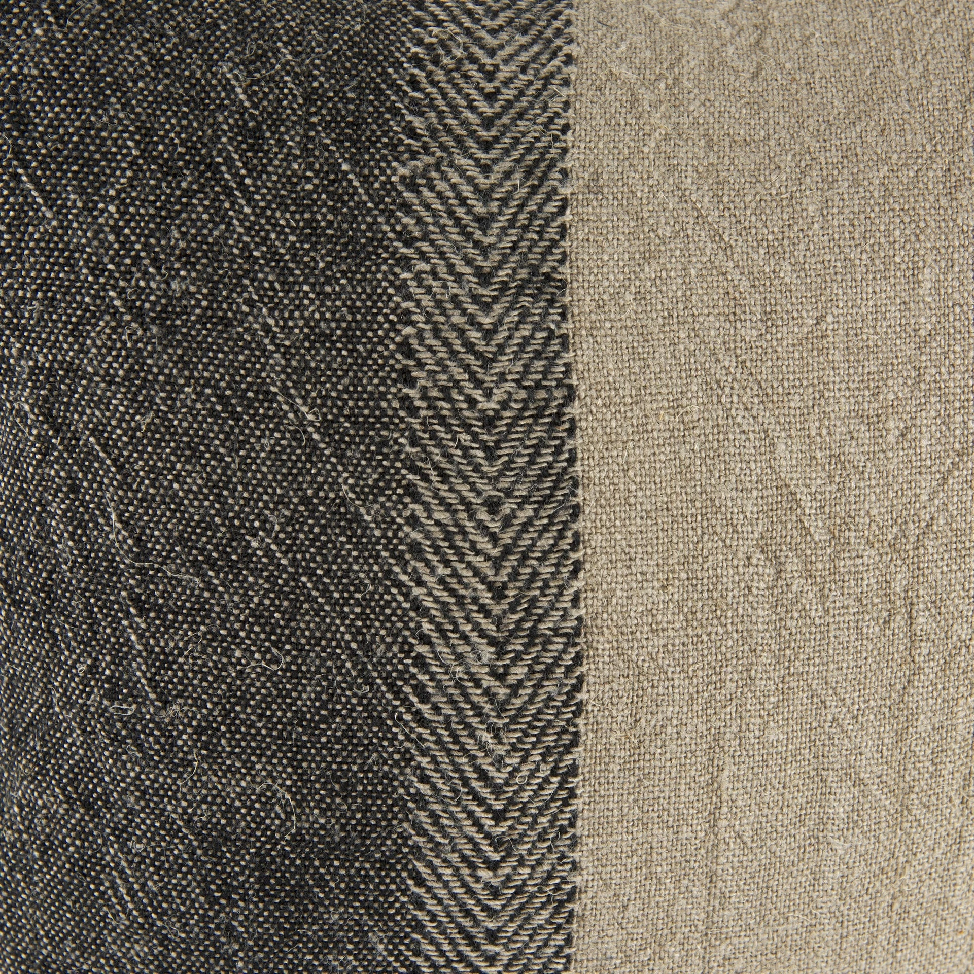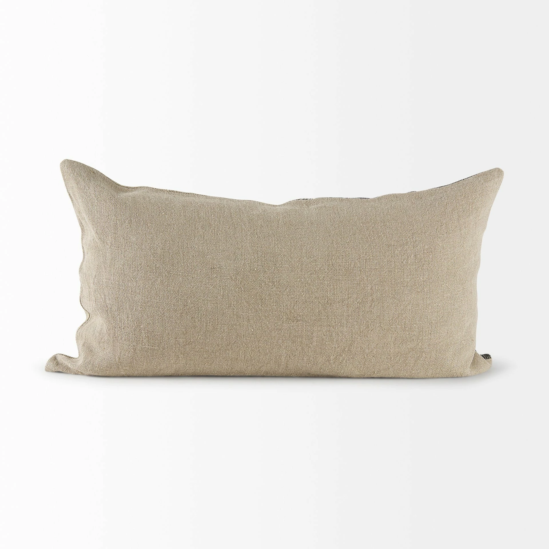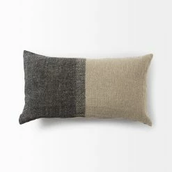 The Isolde is a 14L x 26W Beige and Black Fabric Color Blocked Decorative Pillow Cover with zipper closure. Also available in 20 x 20. Cover only. Insert not included (sold separately).