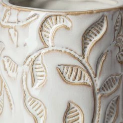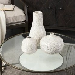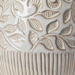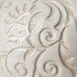 Meticulously crafted from ceramic and finished in an elegant white glaze, the Jadzia I is an exquisite, stout vase that features an intricate and graceful, embossed floral pattern. It looks great by itself or when paired with others from this series and is guaranteed to turn heads in spaces based on the Enduring Elegance and Global Curiosities design styles.
