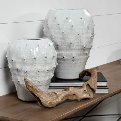 Expertly handcrafted from ceramic and finished in a glossy white tone, the Julian is a beautiful vase that flaunts a unique exterior with spokes on it. We recommend the Julian in spaces based on the Mercana Modern and Enduring Elegance design styles.