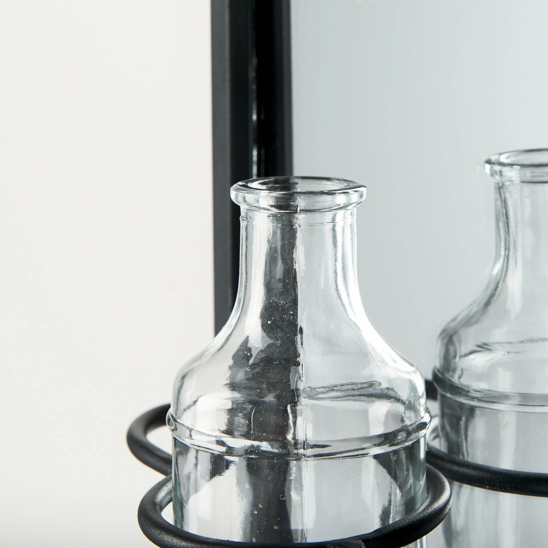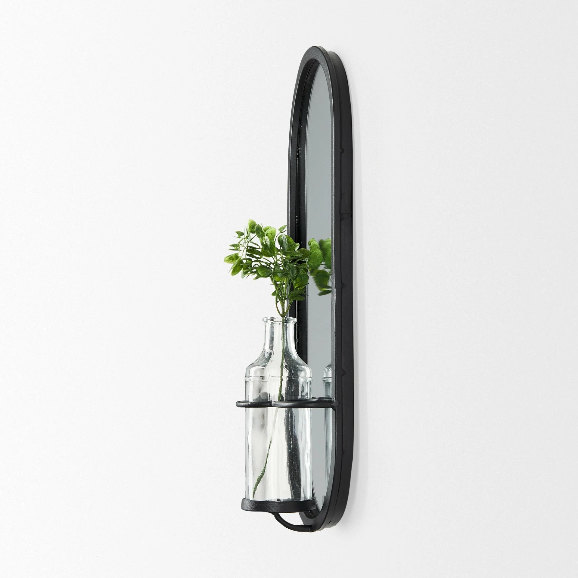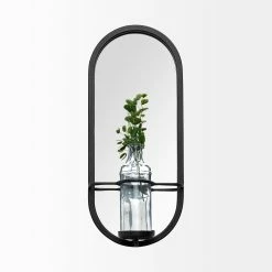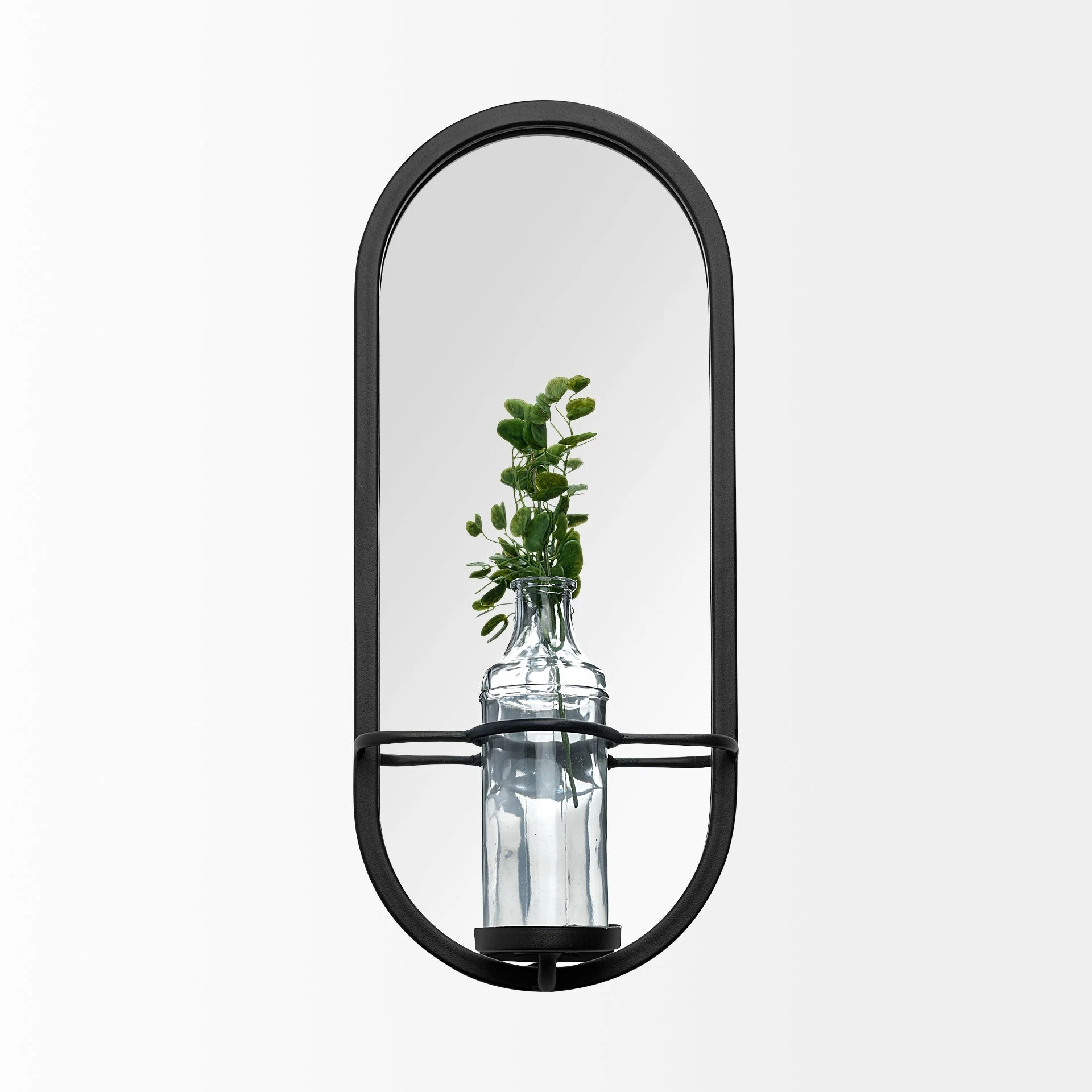 Featuring a frame crafted from matte-black polished metal, the Katherine is a stunning decorative object that is guaranteed to elevate your decor game. It flaunts a mirror-glass lining and a glass jar that can host a small candle or plant, making it a great choice of functional wall decor for spaces based on the Mercana Modern, Enduring Elegance or Industrial design styles.
