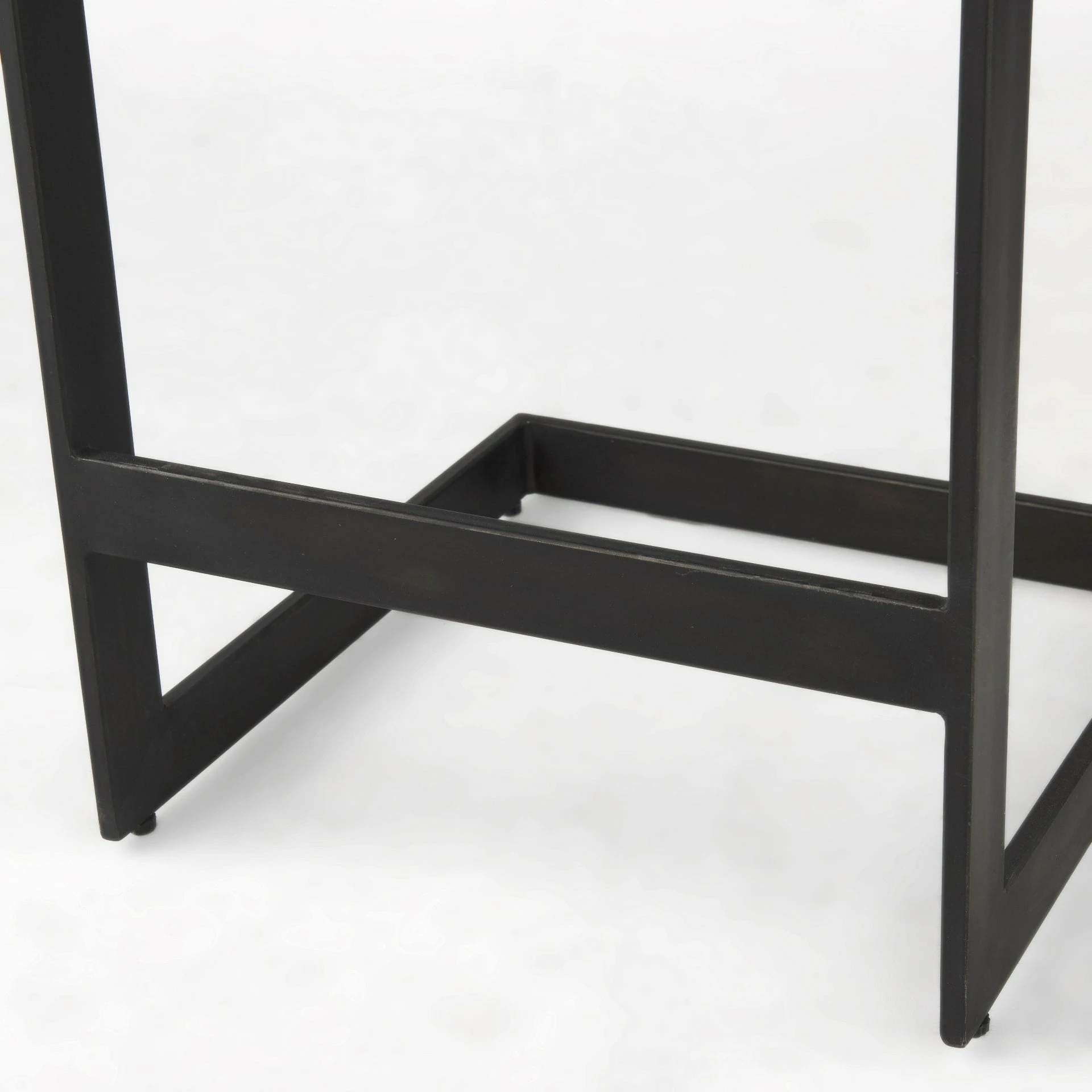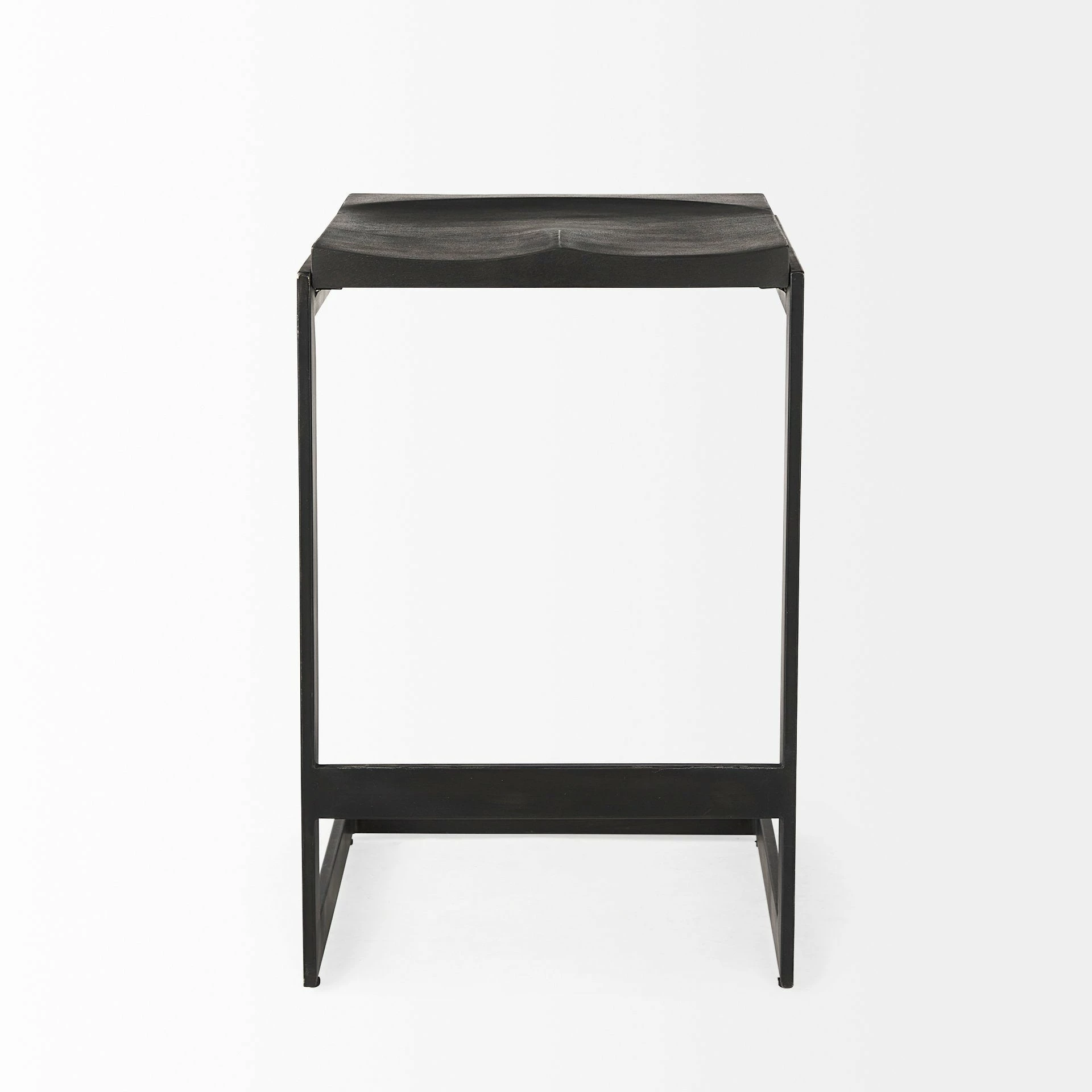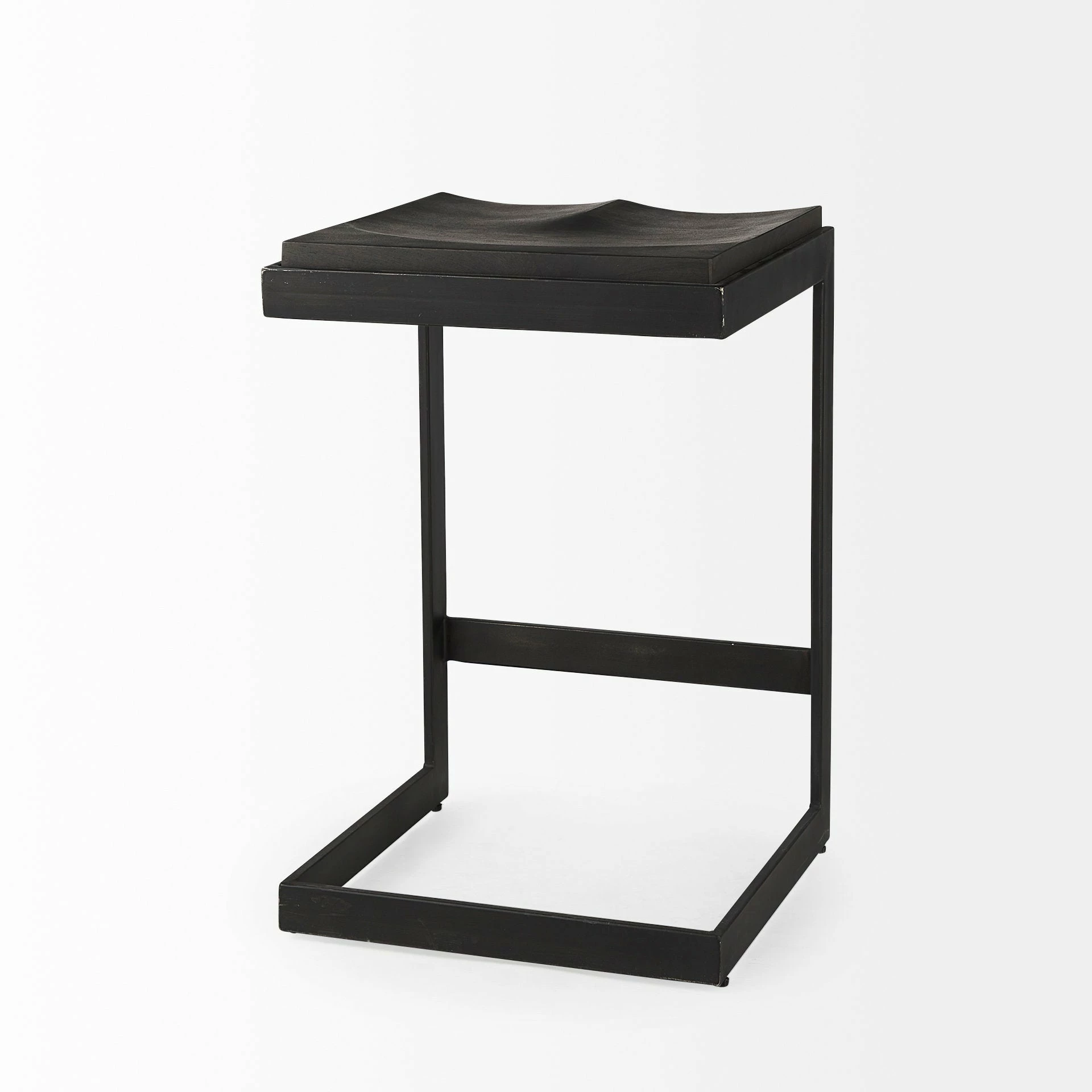 A solid wood and metal counter stool with a refined demeanor. Solid Wood and Metal Construction ย This modern counter stool features a Mango wood seat that rests on an iron frame in a C-shape design. A footrest is neatly incorporated into the base and the seat is gracefully indented to provide additional comfort, while keeping with its minimal aesthetic. ย ย Black Finish ย The wood is smooth textured in a black-stained finish with warm, brown undertones. The iron base features an unfussy, matte black finish. ย ย Backless Benefits ย With no back visible above countertops and no arms taking up space, this stool lends itself to no-clutter interiors and smaller spaces. ย ย Modern Inspired Design ย This piece is the epitome of modern simplicity, perfect for homes that favor clean style and subtle sophistication!