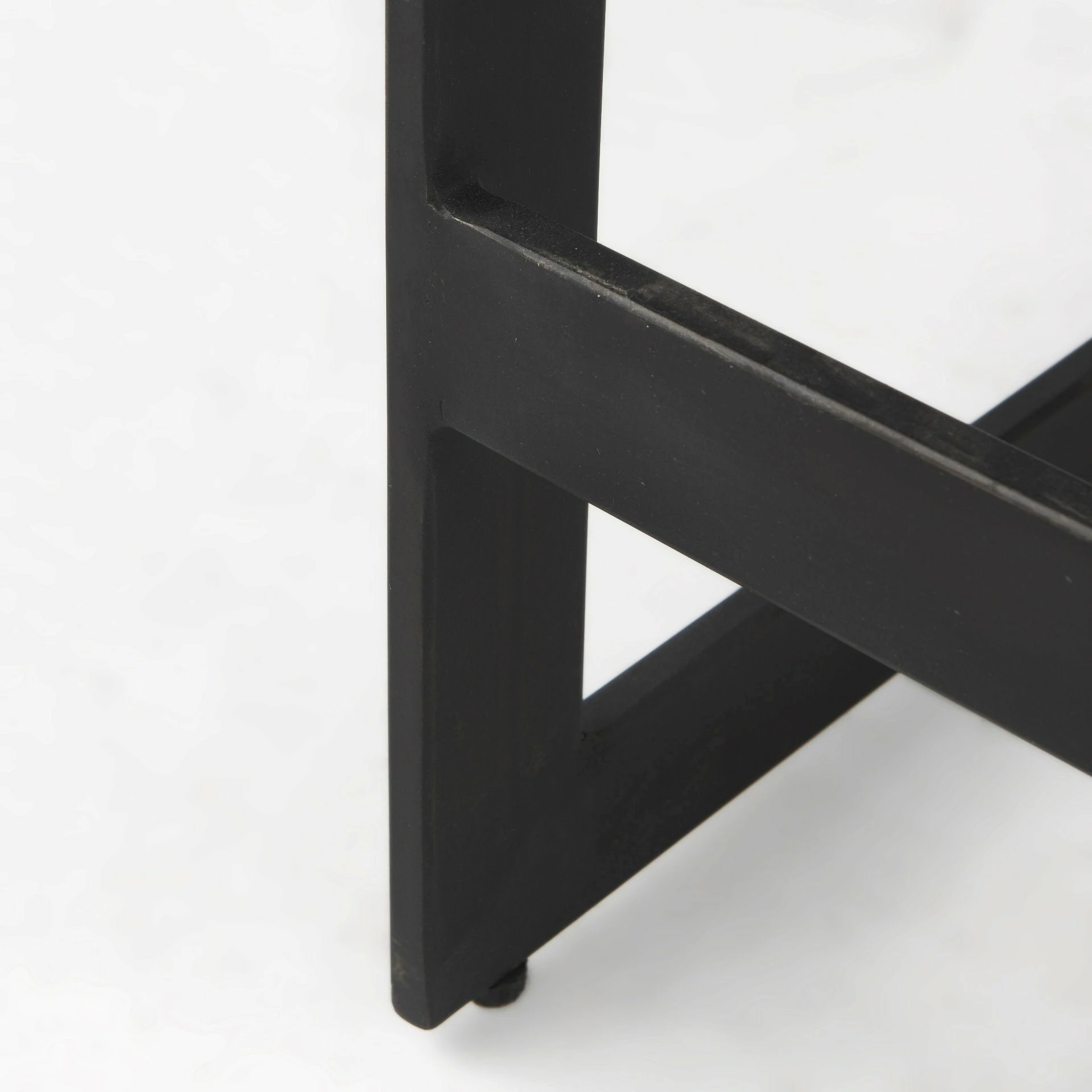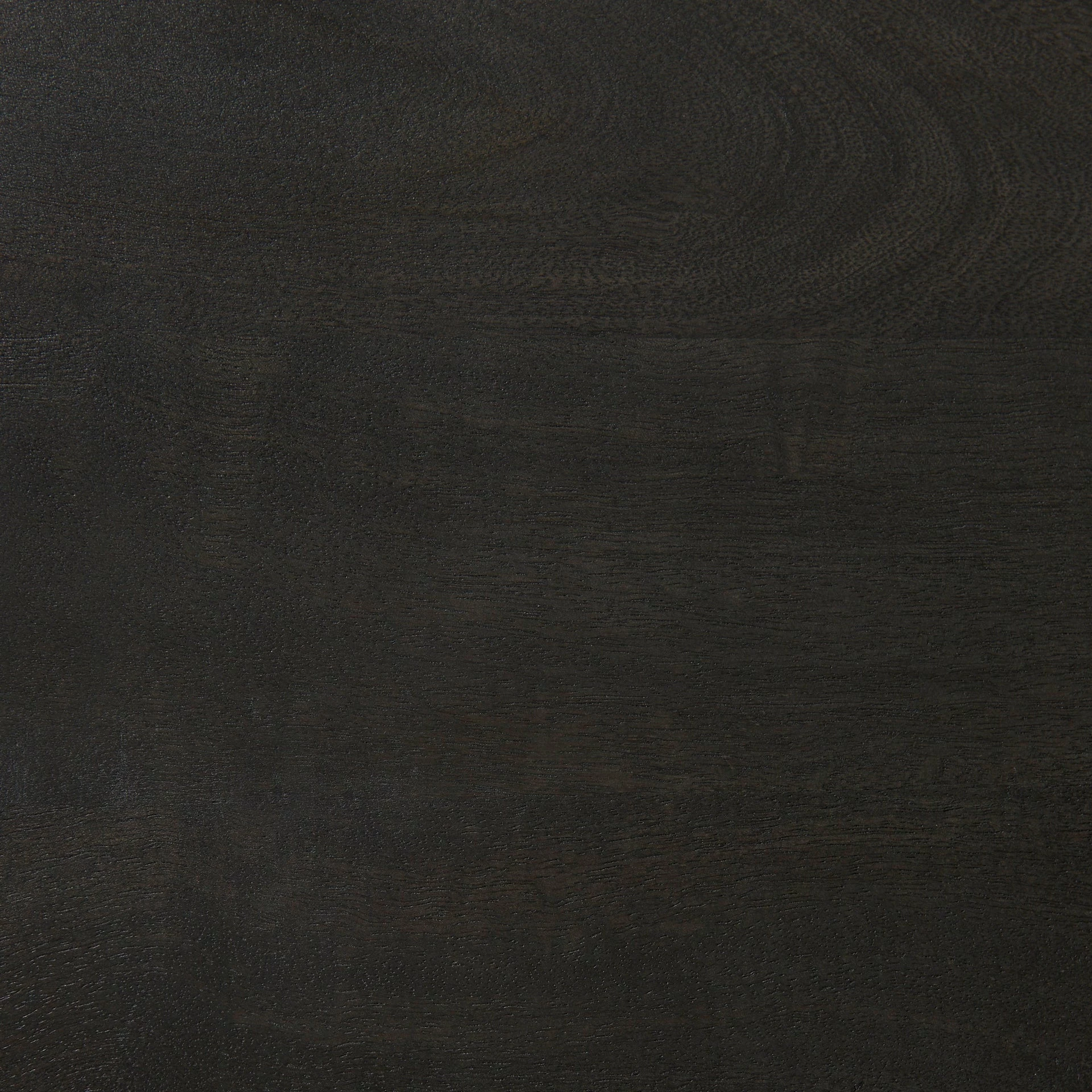 The wood is smooth textured in a black-stained finish with warm, brown undertones. The iron base features an unfussy, matte black finish.ย - Backless Benefits
