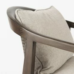ย ย This Mid-Century armchair features a fusion of textures balanced by clean lines and a simple design. A cane back sits within a solid Beech wood frame that runs into low tapered legs and accommodates a padded fabric seat. Added comfort is provided by overstuffed, loose cushions for the seat and back.ย - Enhanced Comfort and Ambiance