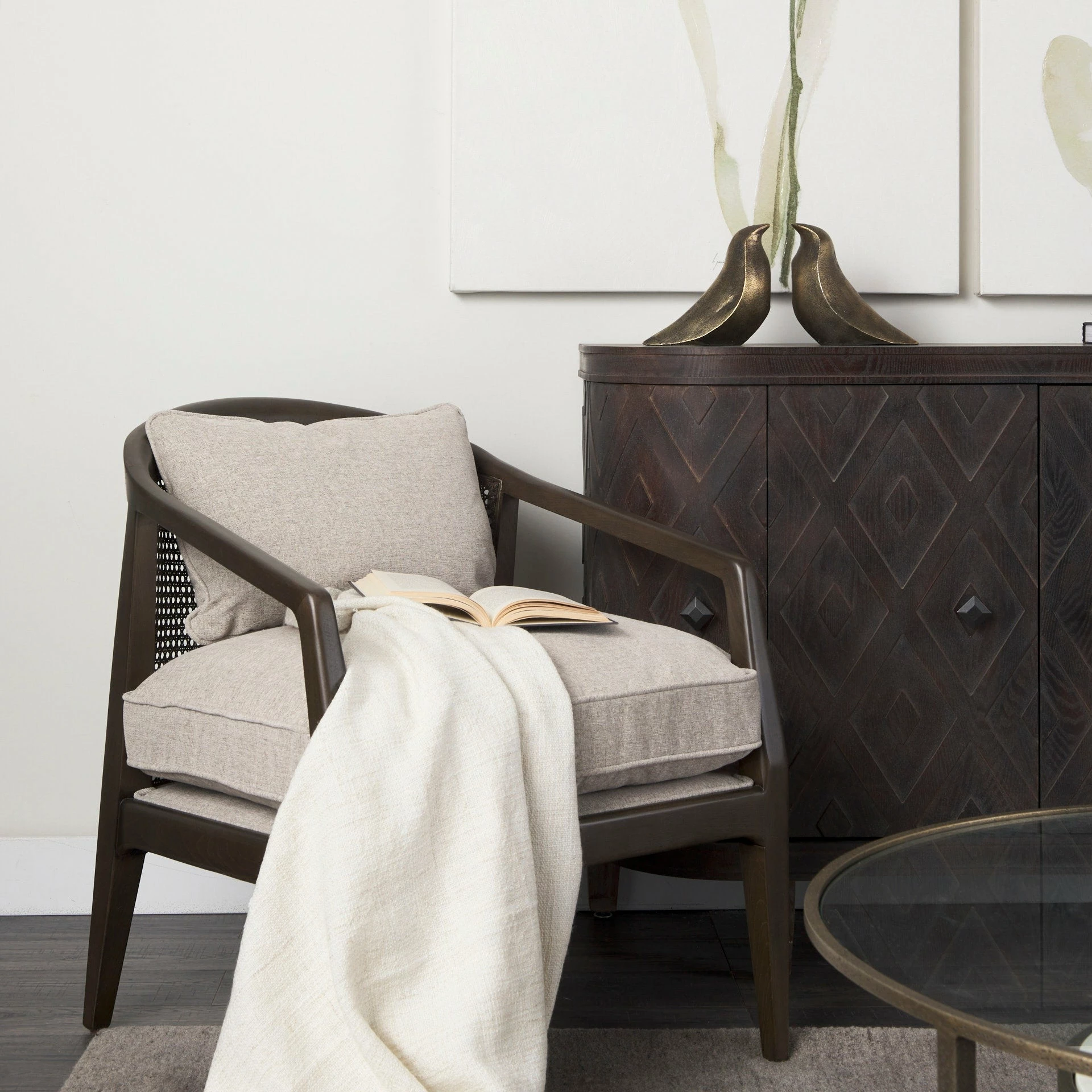 ย ย The Landon armchair measures 25.6″L x 29.1″W x 30.5″H.ย - Solid Wood, Fabric and Cane