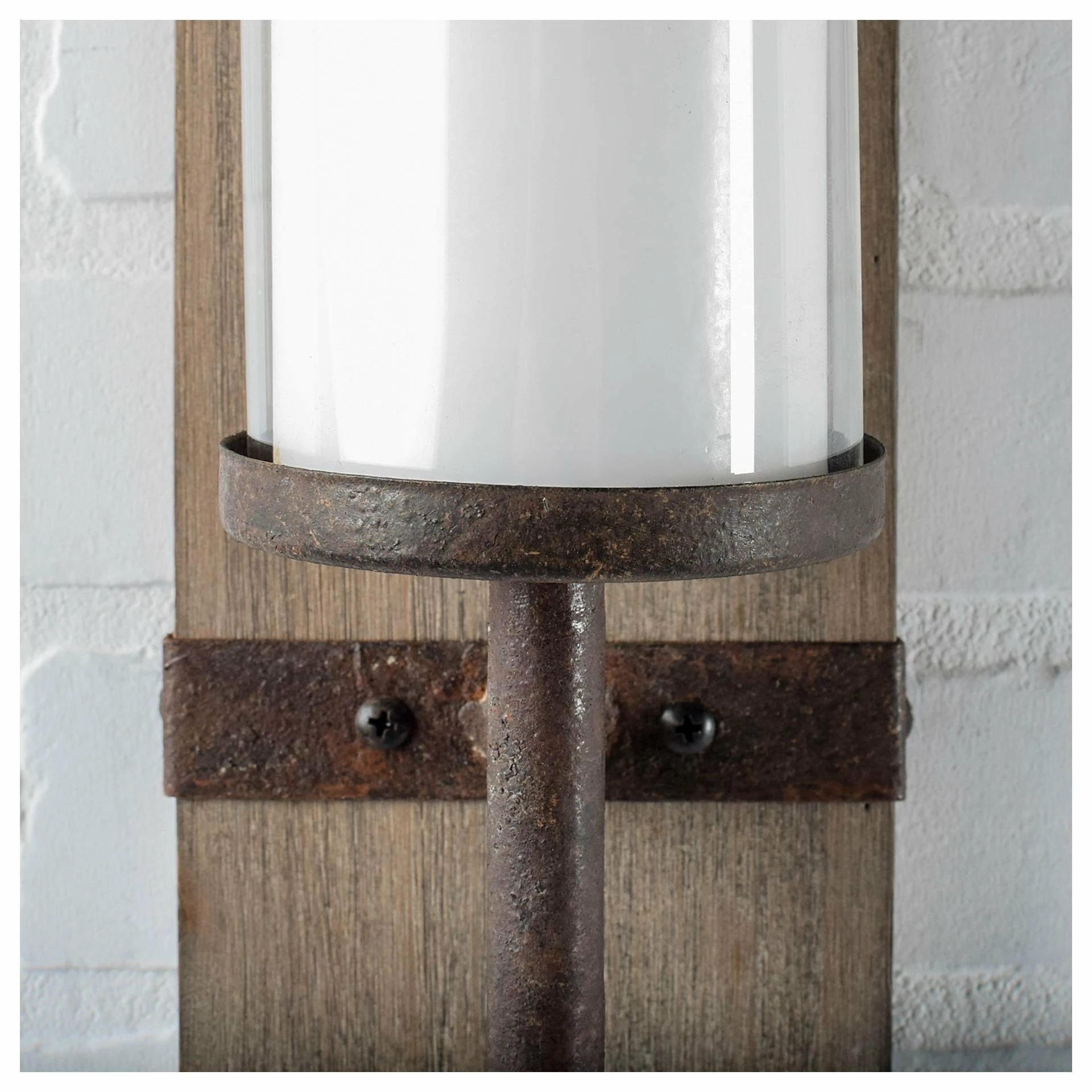 The Lars elegant wall candle holder features a natural wood polish and a rustic brown metal tone.ย - Farmhouse/Industrial Inspired Design