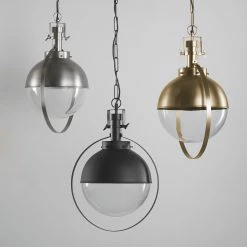 Featuring a spherical shade finished in a antiqued-gold polish, the Leighton is a posh lighting fixture that boasts of a superior polish guaranteed to add a touch of panache to any space and setting. ย - Modern/Industrial Inspired Design