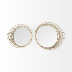 The Leona is a set of two stunning decorative trays featuring a mirror-inlay base with an intricately woven, wicker periphery. Finished in a natural, blonde brown tone, the Leona set of decorative trays makes for an amazing addition to any decor collection, especially ones based on the coastal or tropical design styles.ย
