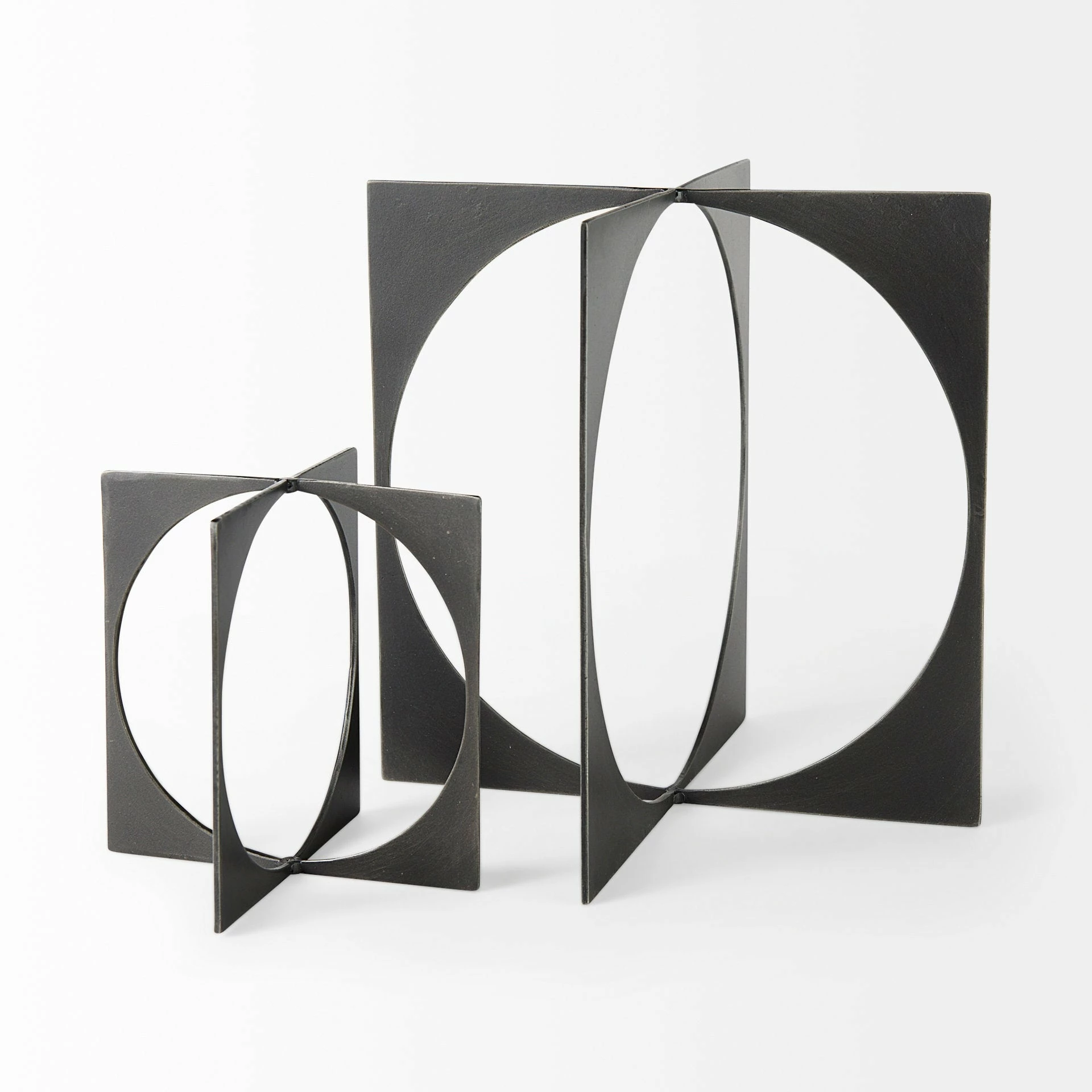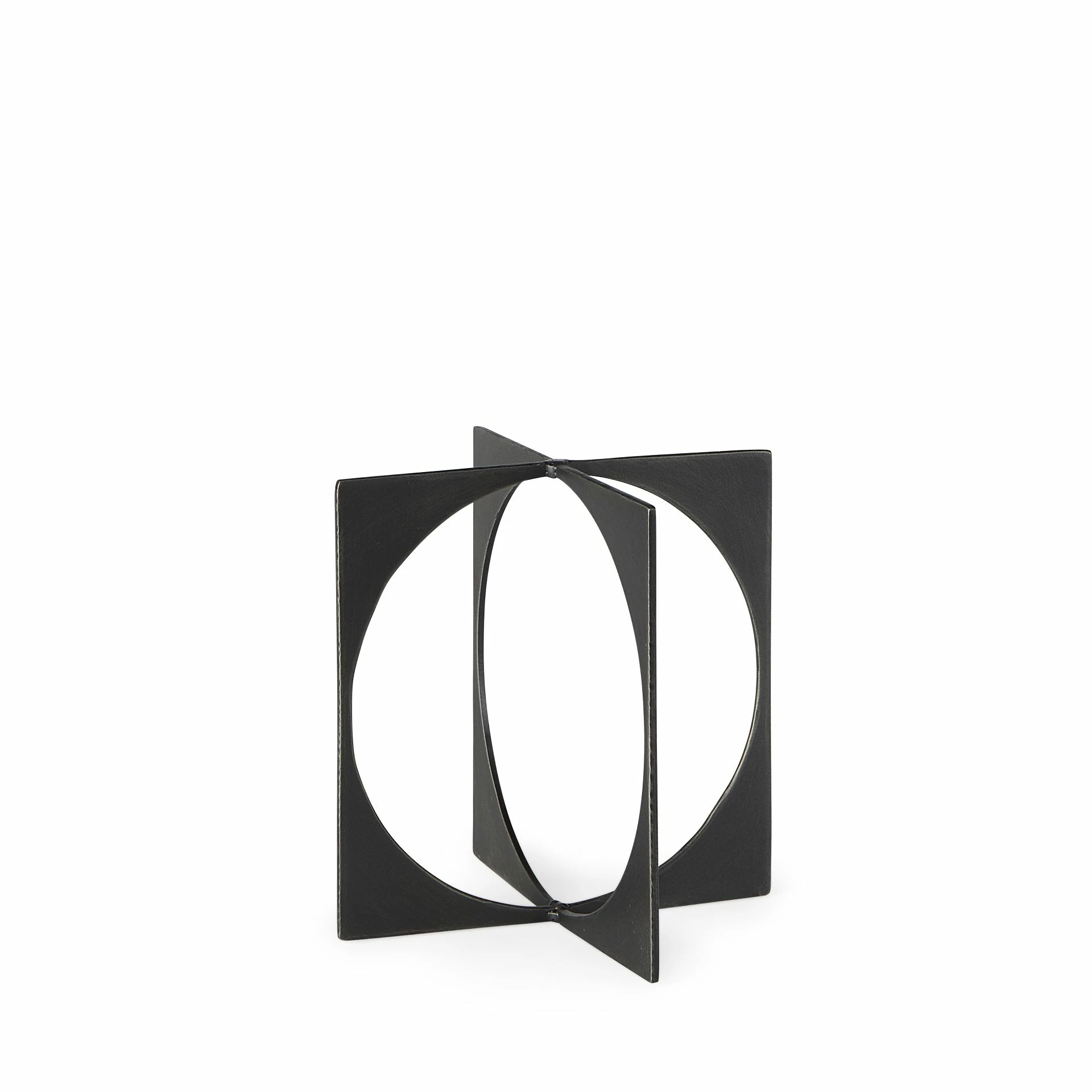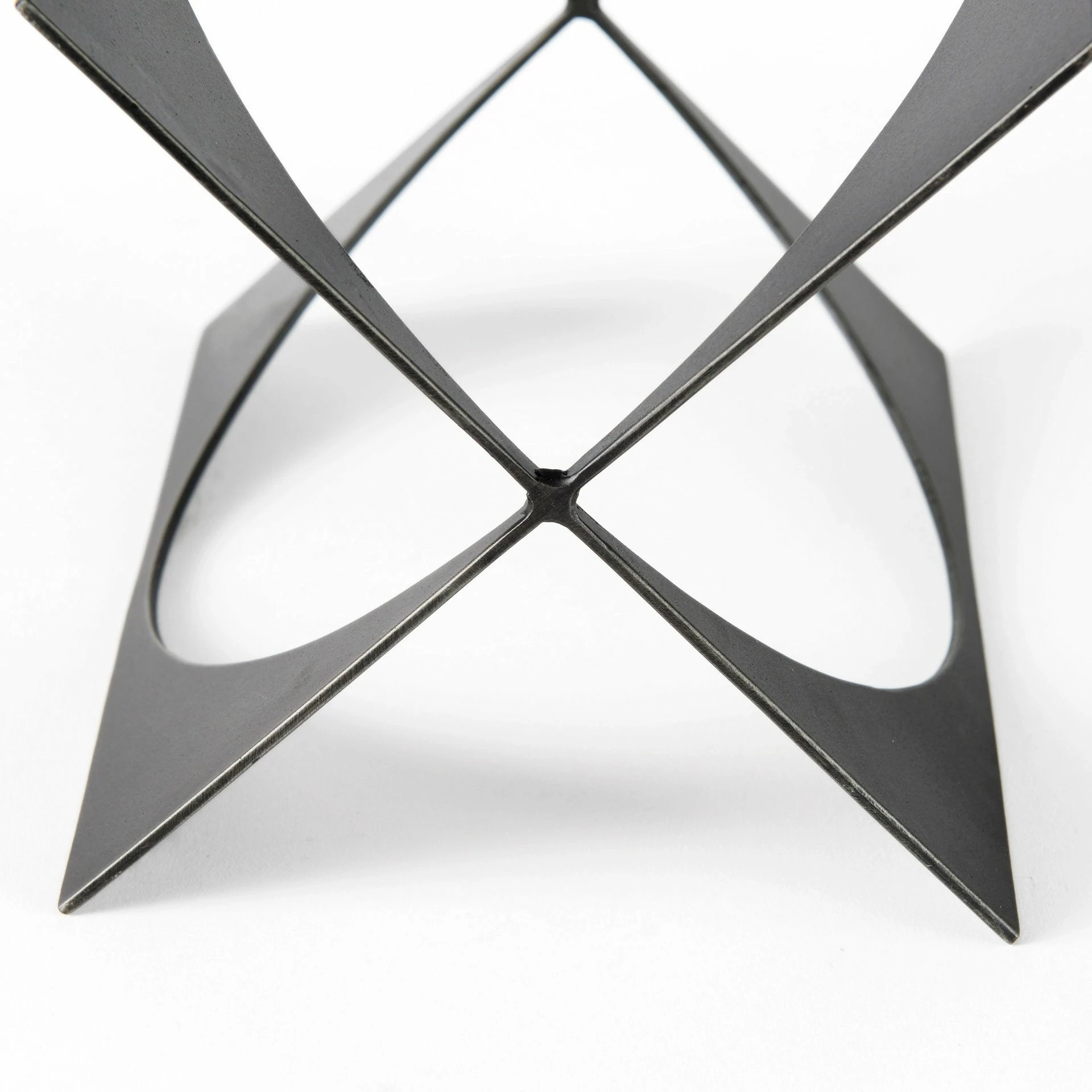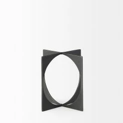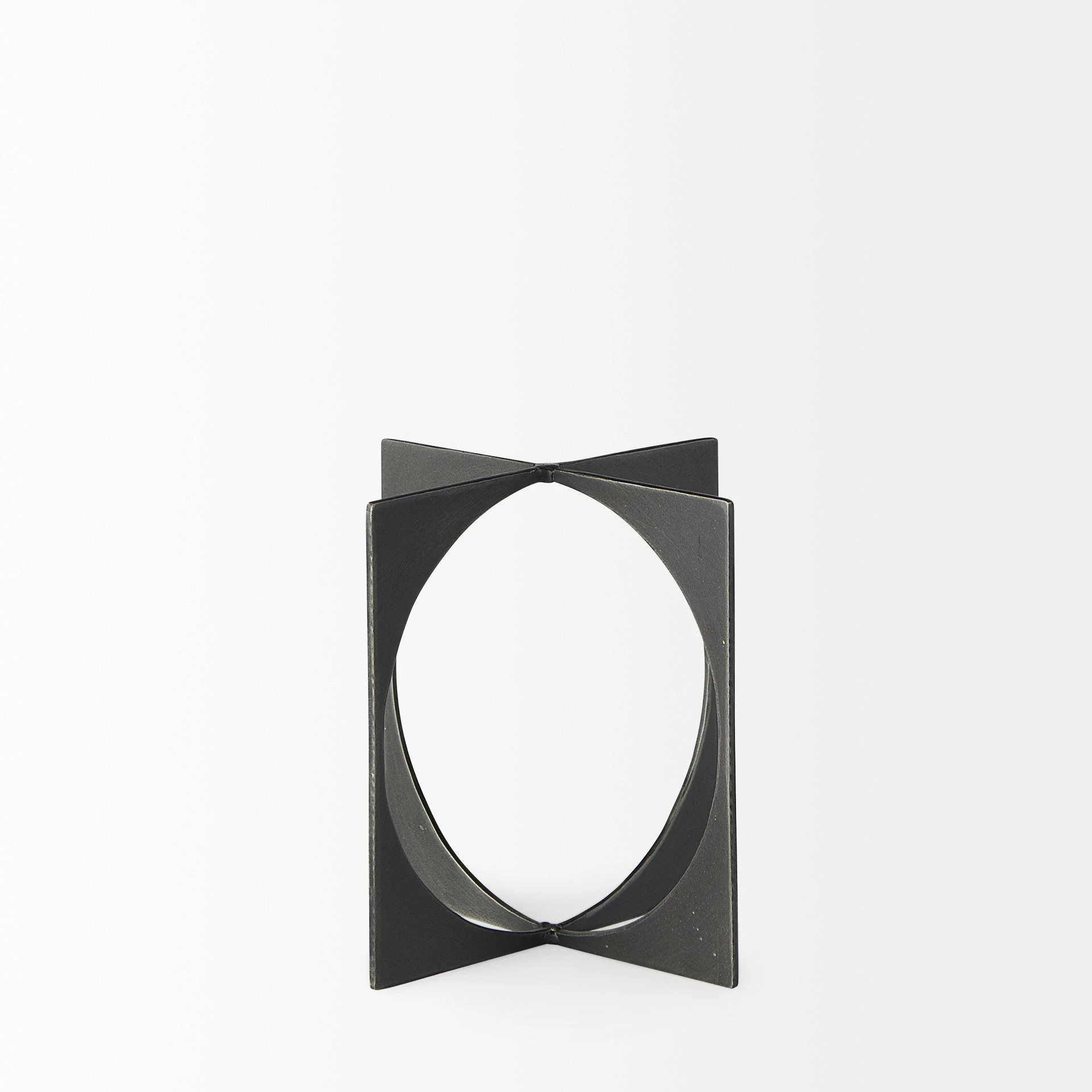 The Lima decorative object measures 4.5L x 4.5W x 5.5H.Β The Lima is crafted from sturdy metal iron, that is built to stand the test of time.Β The Lima is finished in a dark gunmetal color with a matte finish that is smooth to the touch.Β The large Lima can be paired with the small Lima for a cohesive piece of decor.Β