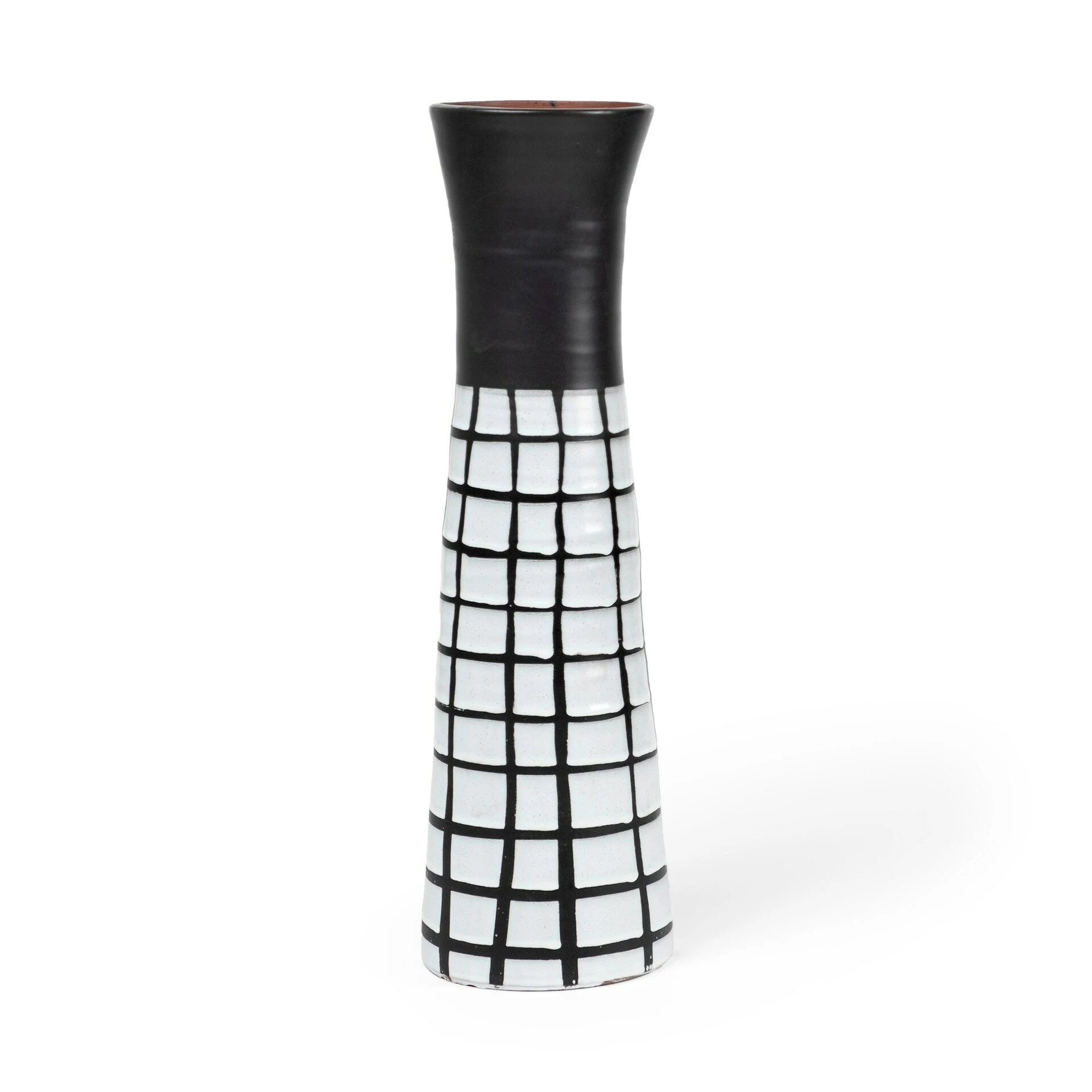 The Luanda is a ceramic vase featuring a square block pattern in black and white tones.