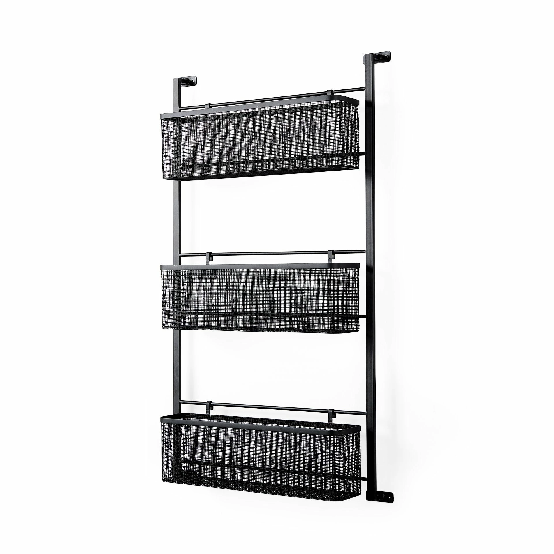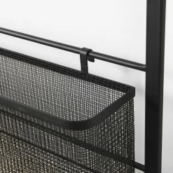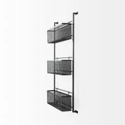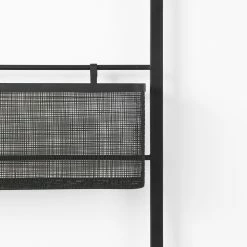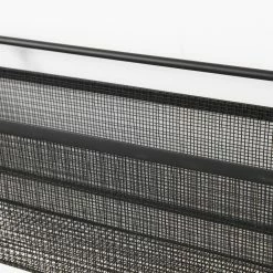ย Macrinus is a wall mounted wall storage unit finished in a black metal and mesh material.ย